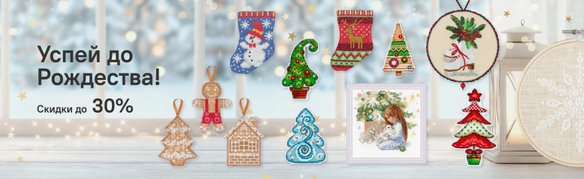 При покупке 1 набора для вышивания, не участвующего в «Ликвидации коллекций прошлых лет», предоставляется скидка 20% на 2 товара из «Ликвидации коллекций прошлых лет»