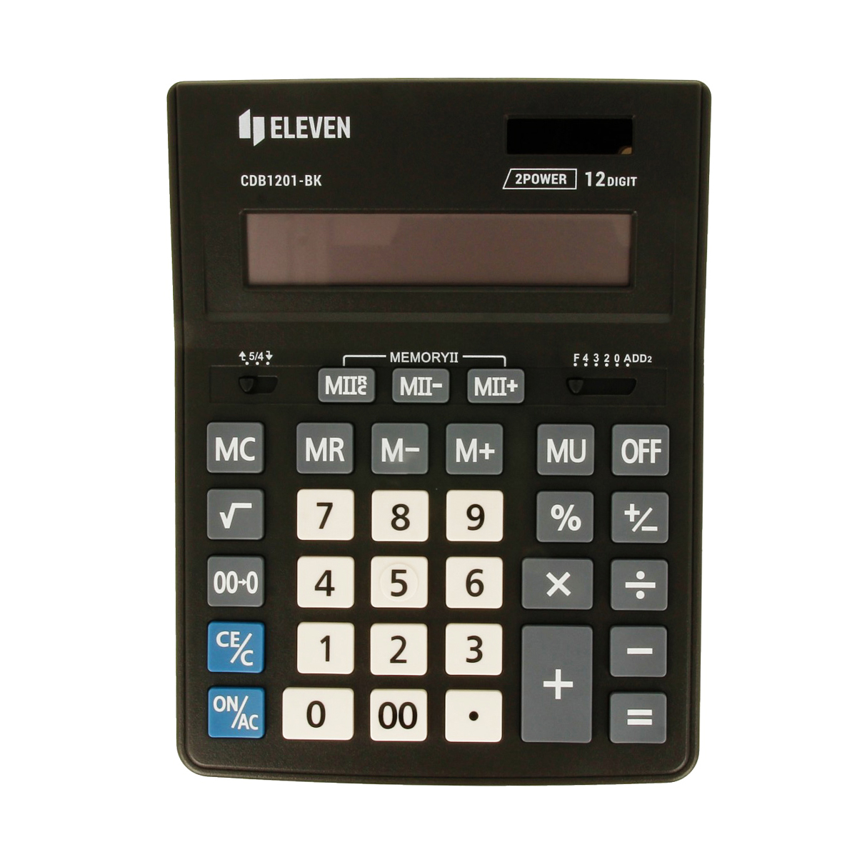 12-ти разрядный настольный калькулятор Eleven CDB1201-BK – незаменимый помощник в офисе, школе и дома. Оптимальный набор функций поможет автоматизировать расчёты: вычисление квадратного корня, коррекция последнего введенного значения, кнопка «00», двойная память, расчёт наценки. Двойное питание {солнечная батарея + батарейка AG10{LR1130}} и автоматическое отключение увеличивают срок службы. Упакован в картонную коробку. Размер калькулятора – 155*205*35 мм, вес – 200 г, цвет – чёрный.