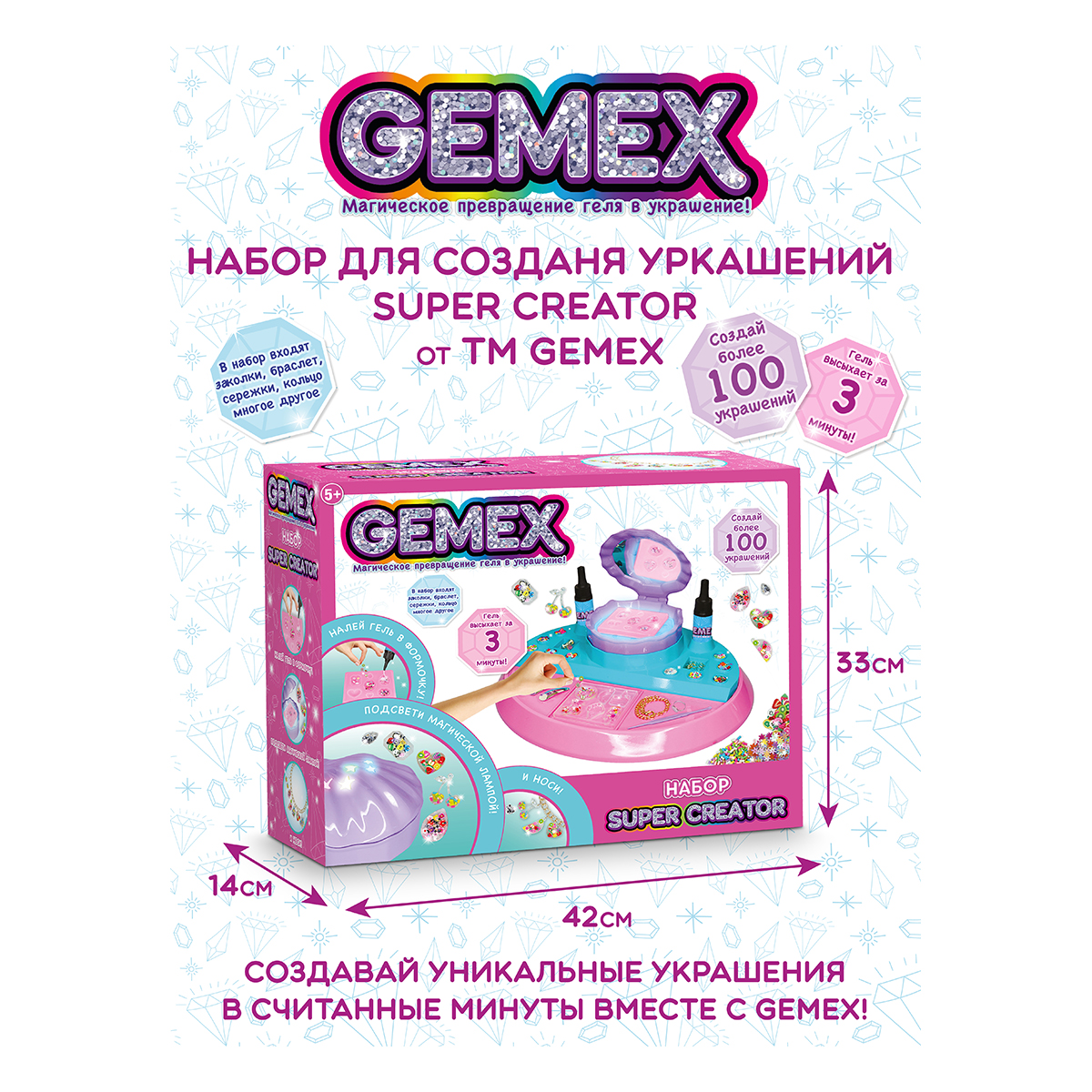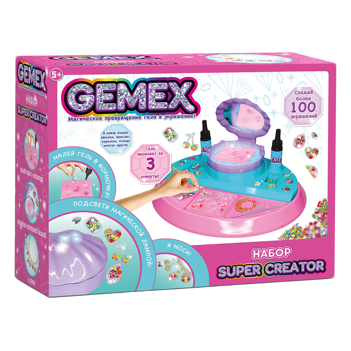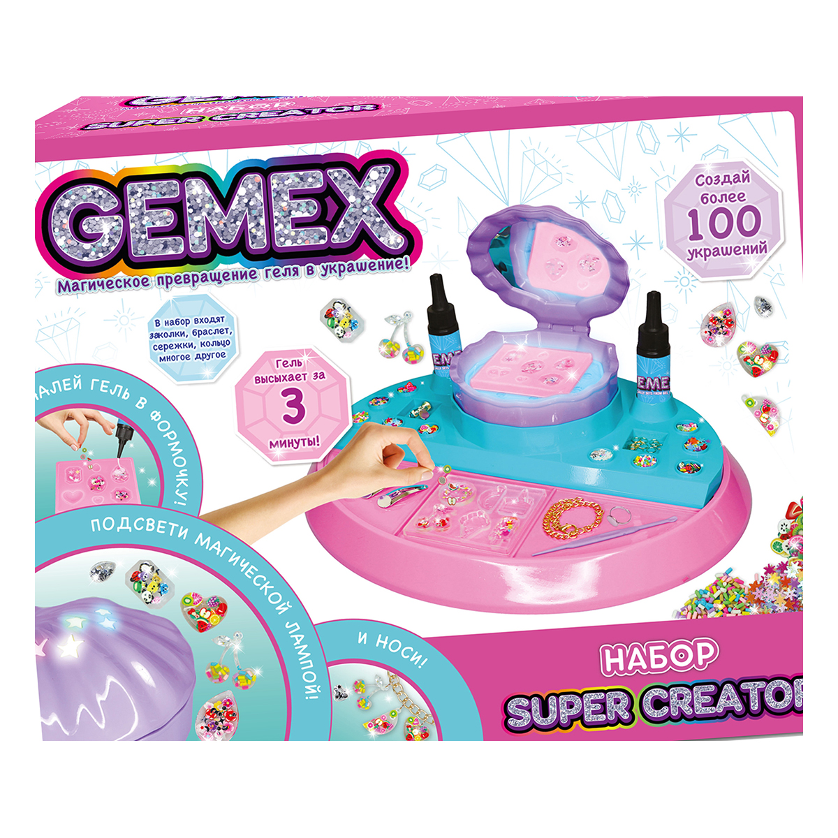 Набор GEMEX для создания украшений и аксессуаров из полимерного геля понравится маленьким рукодельницам. Гель сохнет при помощи УФ-лампы всего 3 минуты, можно создавать красивые комплекты, которые ребенок сможет долго носить.
