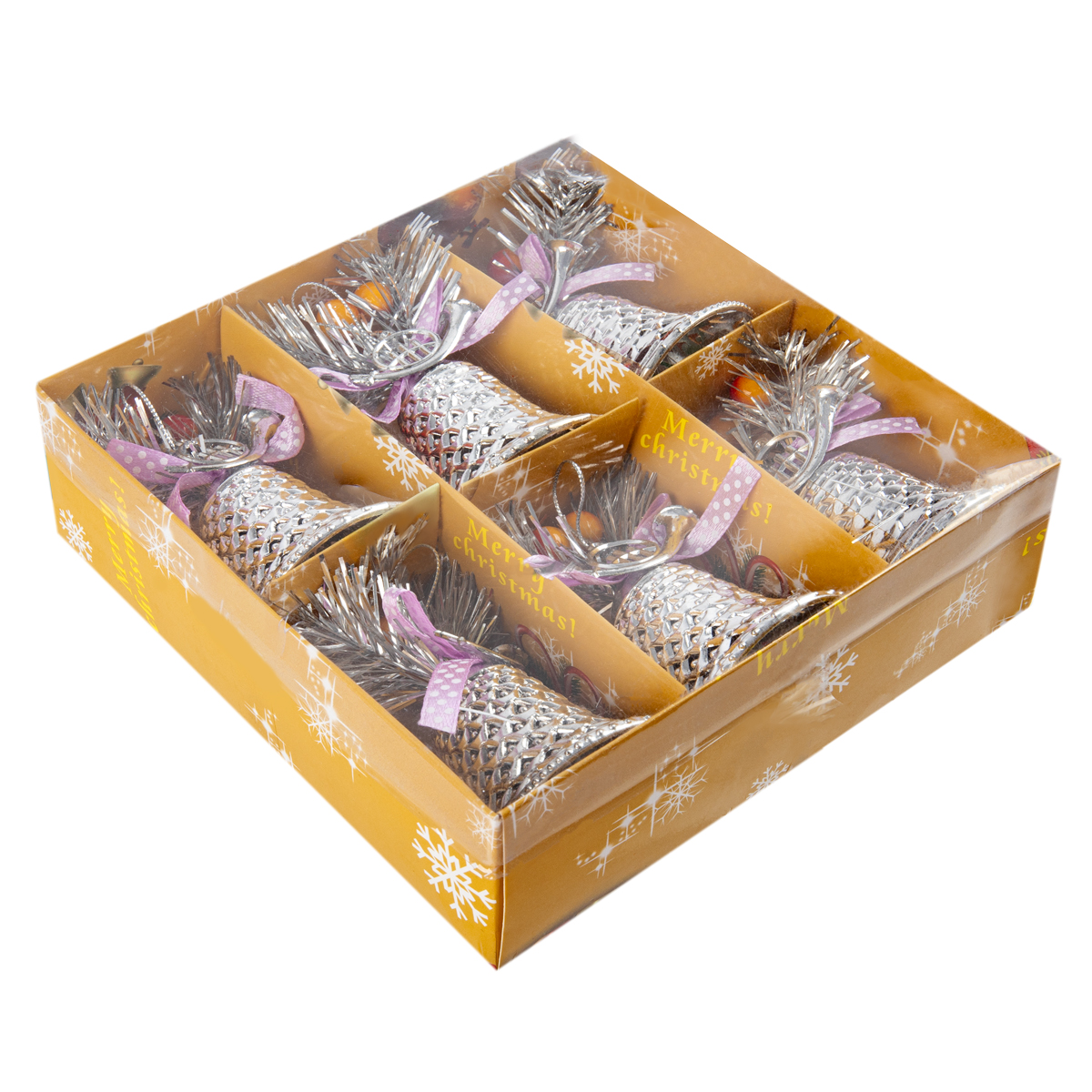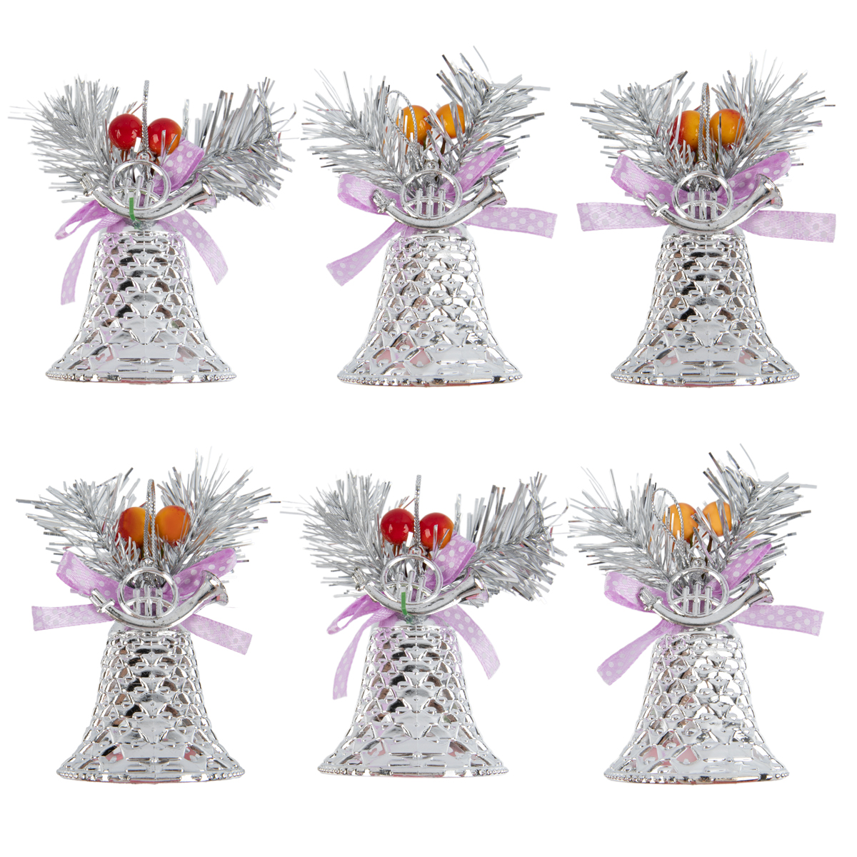 SNOWEEKON SNW-B214 Набор елочных игрушек Колокольчики 6 см 6 шт. №01 Под серебро Фото 1.
