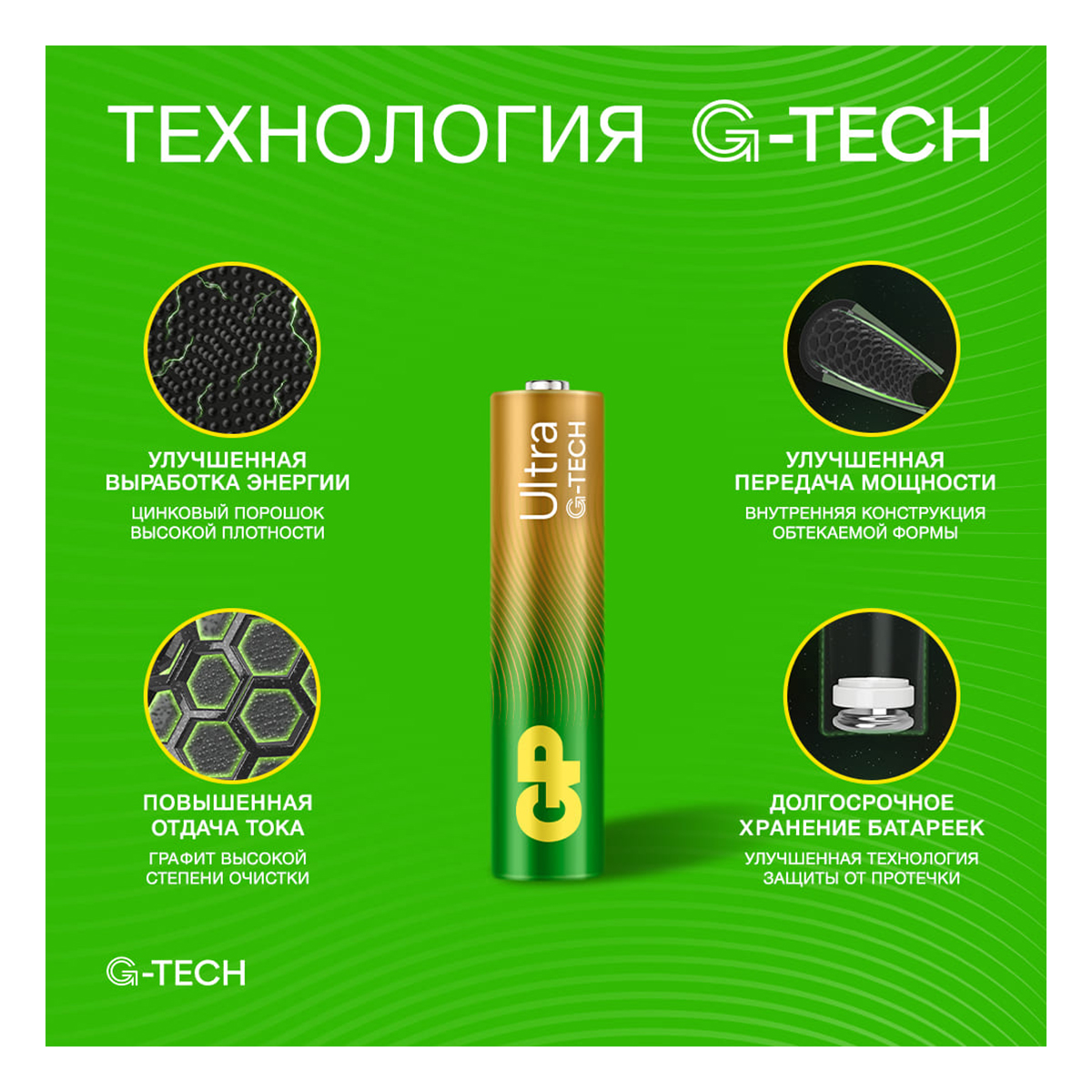 GP Алкалиновые батарейки GP Ultra Alkaline G-Tech 24A AАA 2 шт в блистере GP 24AUA21-2CRSBC2 20/160 Фото 9.