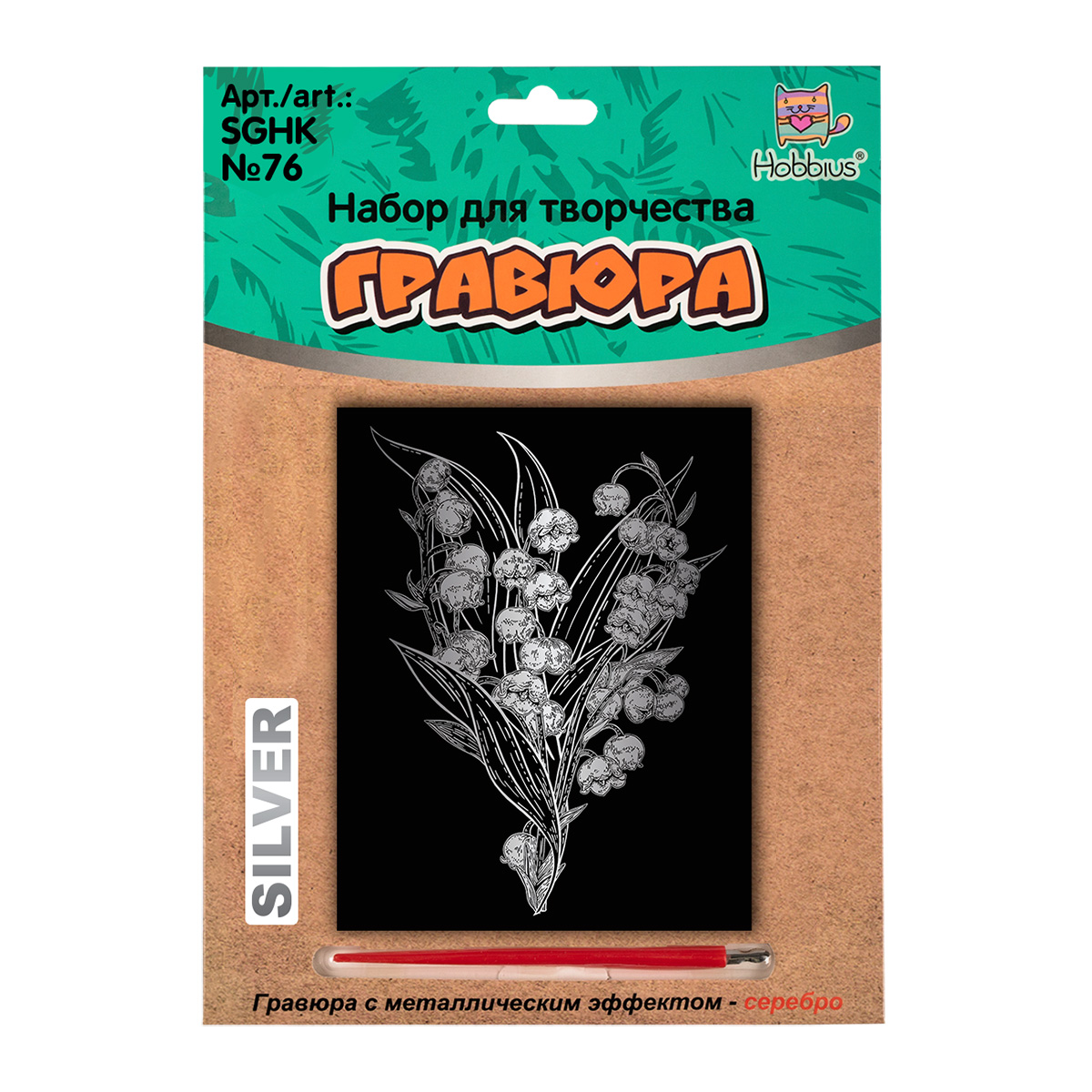 Hobbius SGHK Набор для творчества Гравюра 20 x 25.5 см №76 Ландыши (серебро) Фото 1.