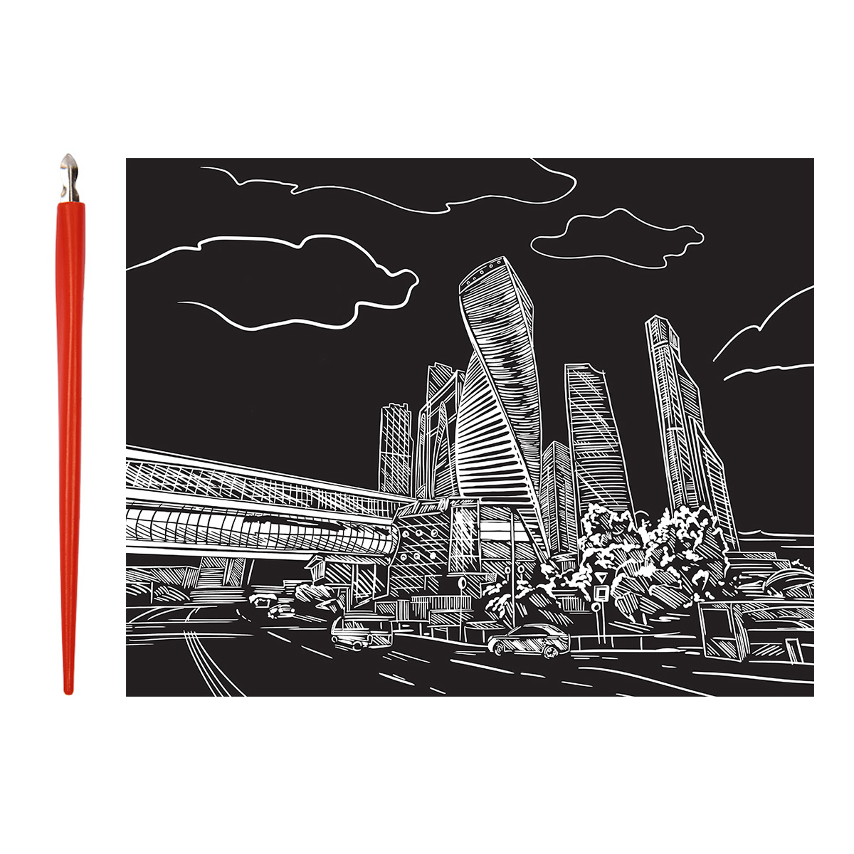 Hobbius SGHK Набор для творчества Гравюра 20 x 25.5 см №77 Москва - Сити (серебро) Фото 3.