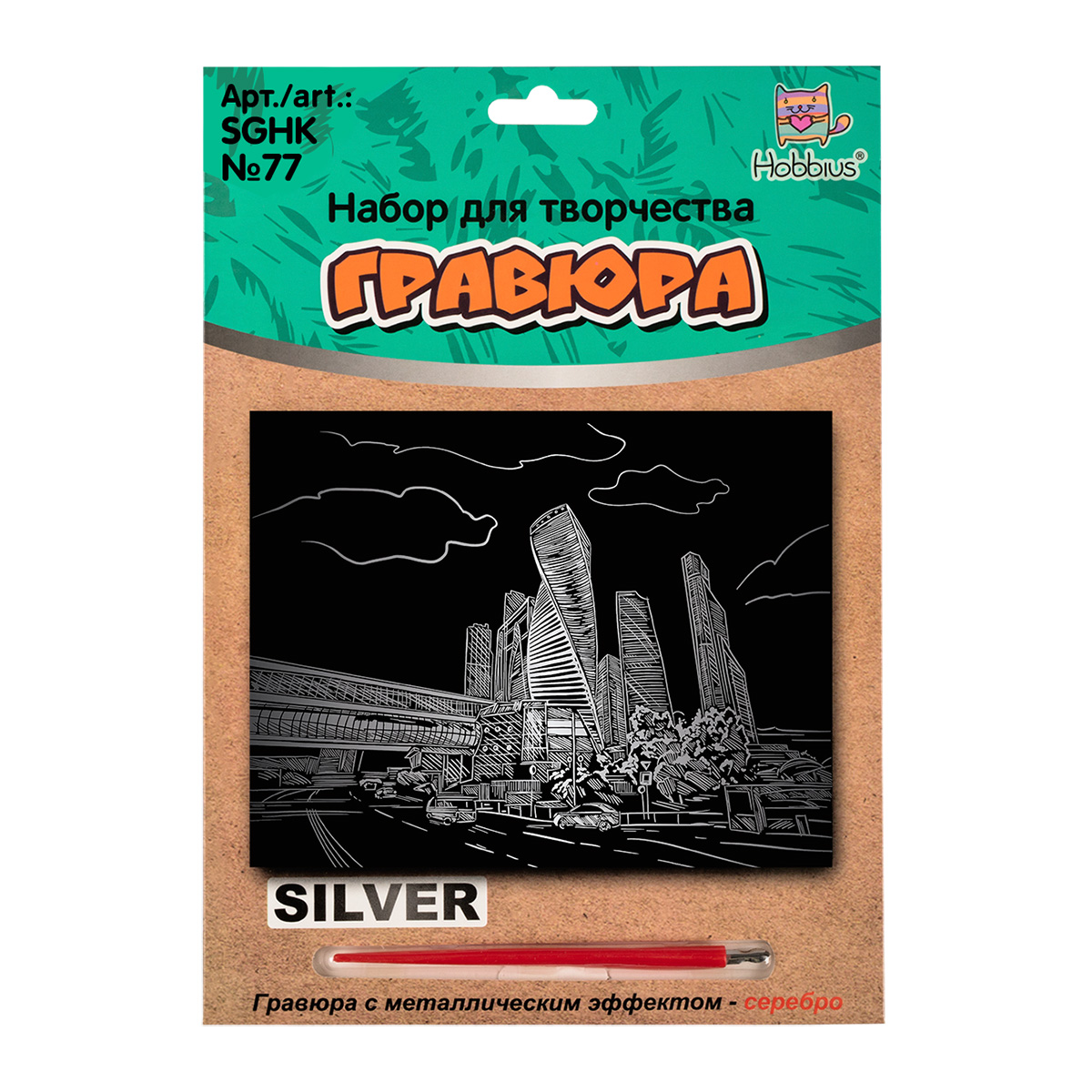 "Hobbius" SGHK Набор для творчества "Гравюра" 20 x 25.5 см №77 "Москва - Сити" (серебро)
