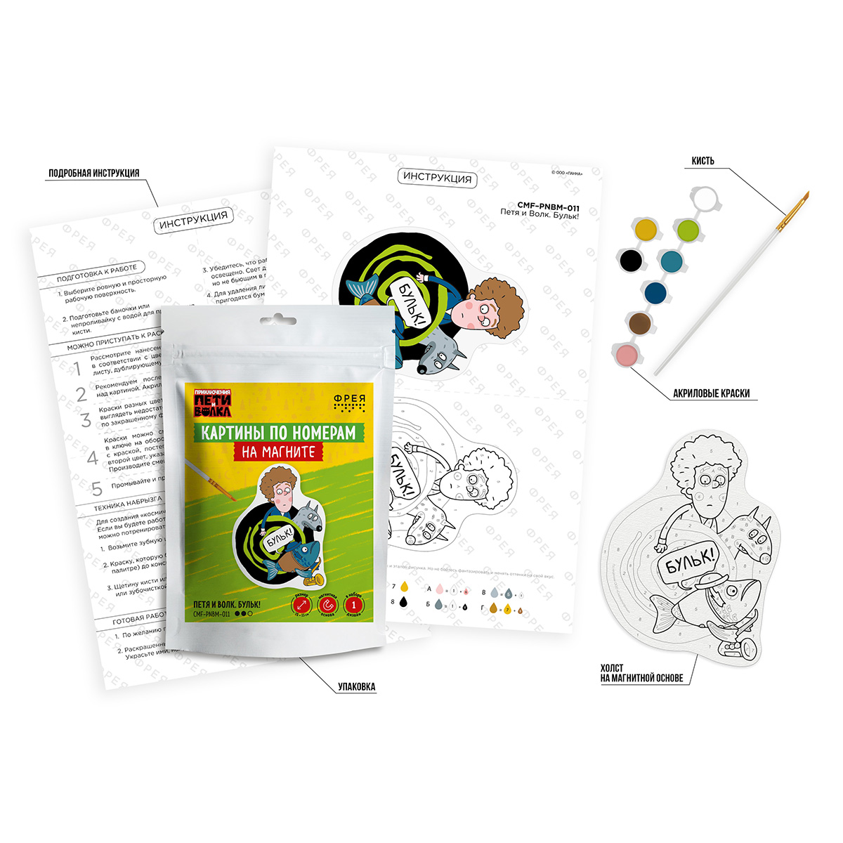 ФРЕЯ CMF-PNBM-011 Набор для раскрашивания по номерам (на магните) 15 х 10 см Петя и Волк. Бульк! Фото 1.
