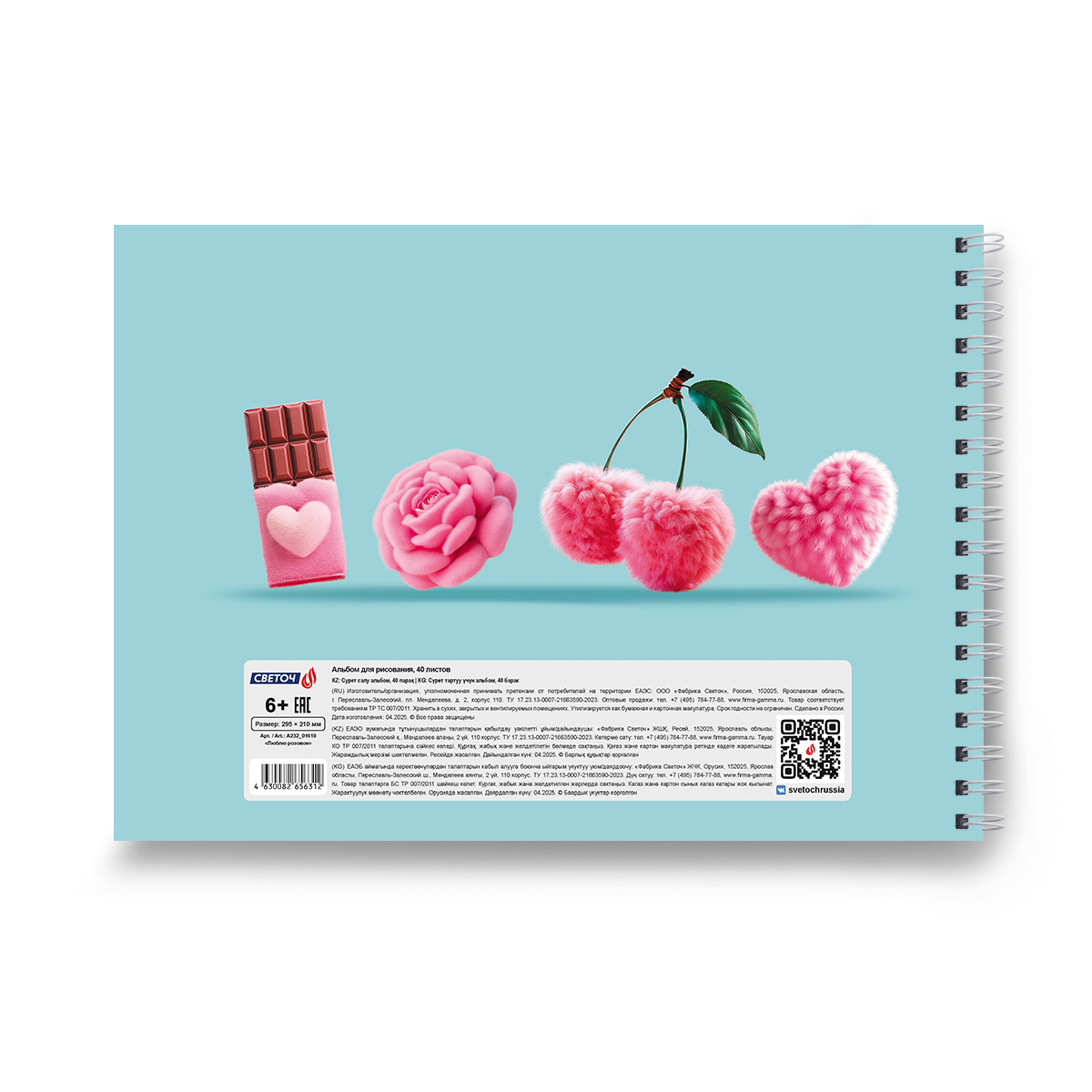 Светоч А232 Альбом для рисования, выбор.лак. 100 г/м2 A4 29.5 х 21 см 40 л. на гребне 01619 Люблю розовое Фото 6.