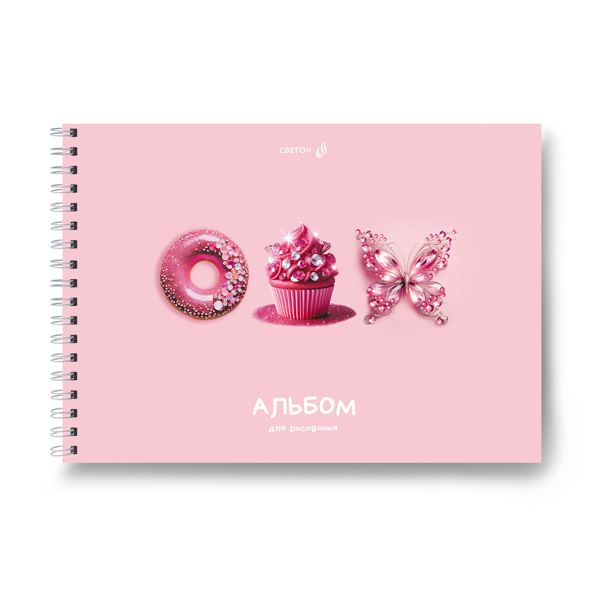 Светоч А232 Альбом для рисования, выбор.лак. 100 г/м2 A4 29.5 х 21 см 40 л. на гребне 01619 Люблю розовое Фото 1.