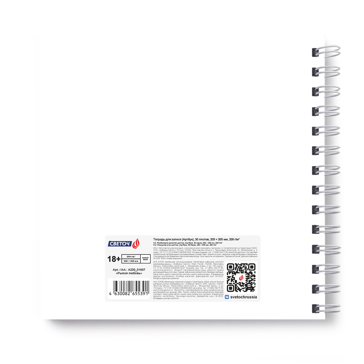 Светоч А230 Артбук (Скетчбук), блок белый, жесткая подложка, 200 г/м2 205*205 мм на гребне 30 л. Рыжая любовь 01607 Фото 2.