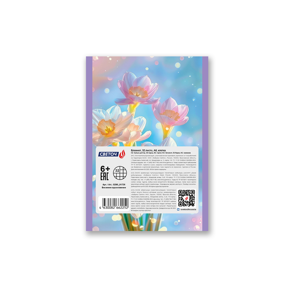 "Светоч" Б260 Блокнот на скобе, A6 32 л. клетка Весеннее вдохновение 01726