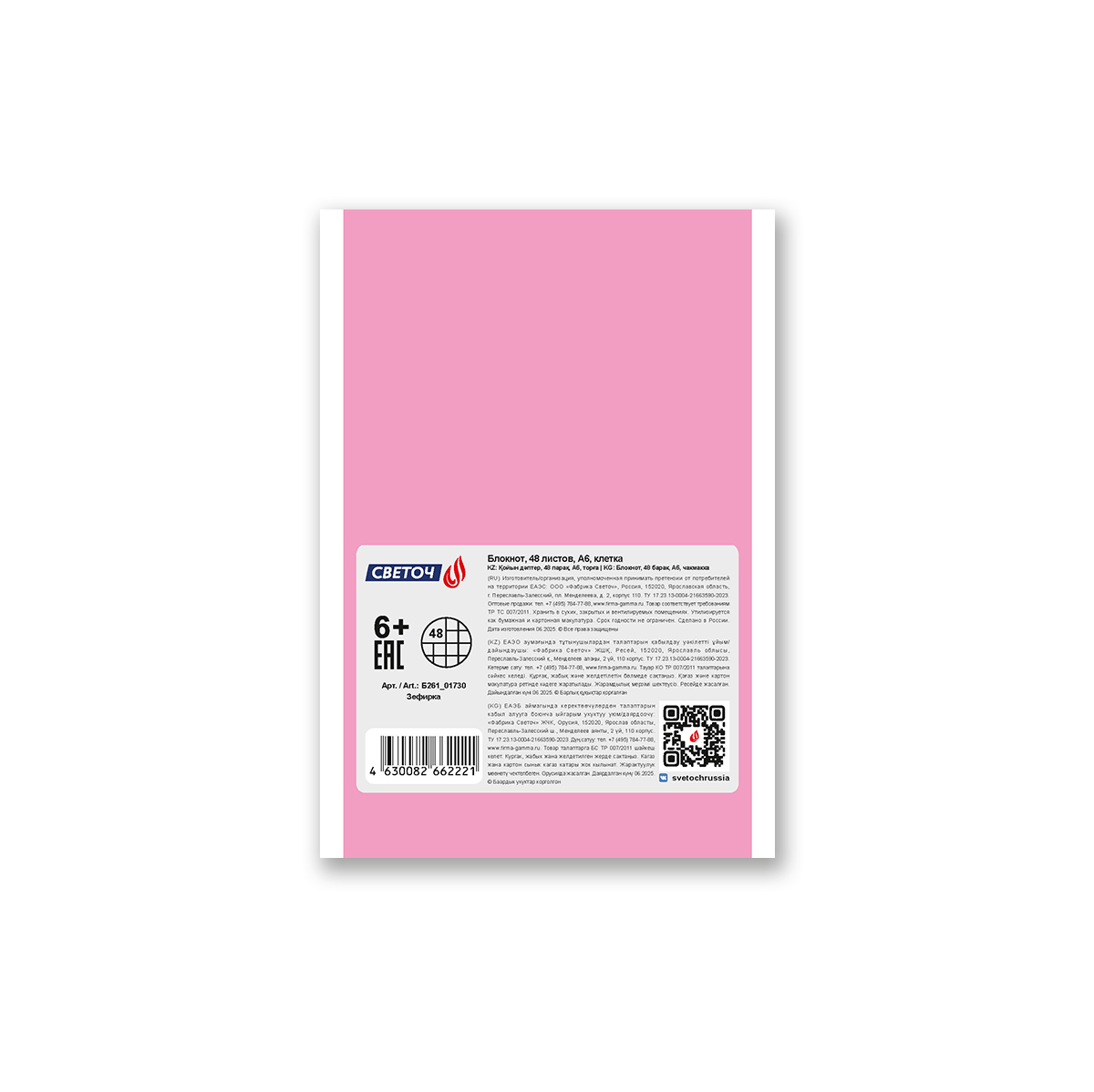 Удобный и стильный блокнот 48 листа, А6 формата - подойдёт для ваших записей, заметок и зарисовок. Небольшой, удобный размер блокнота позволяет всегда брать его с собой и делать записи в любой ситуации. Внутренний блок изготовлен из качественной офсетной бумаги плотностью 60 г/кв. м, 100% белизны, обложка из мелованного картона плотностью 190 г/кв. м. Линовка - клетка. Вид скрепления - скоба.