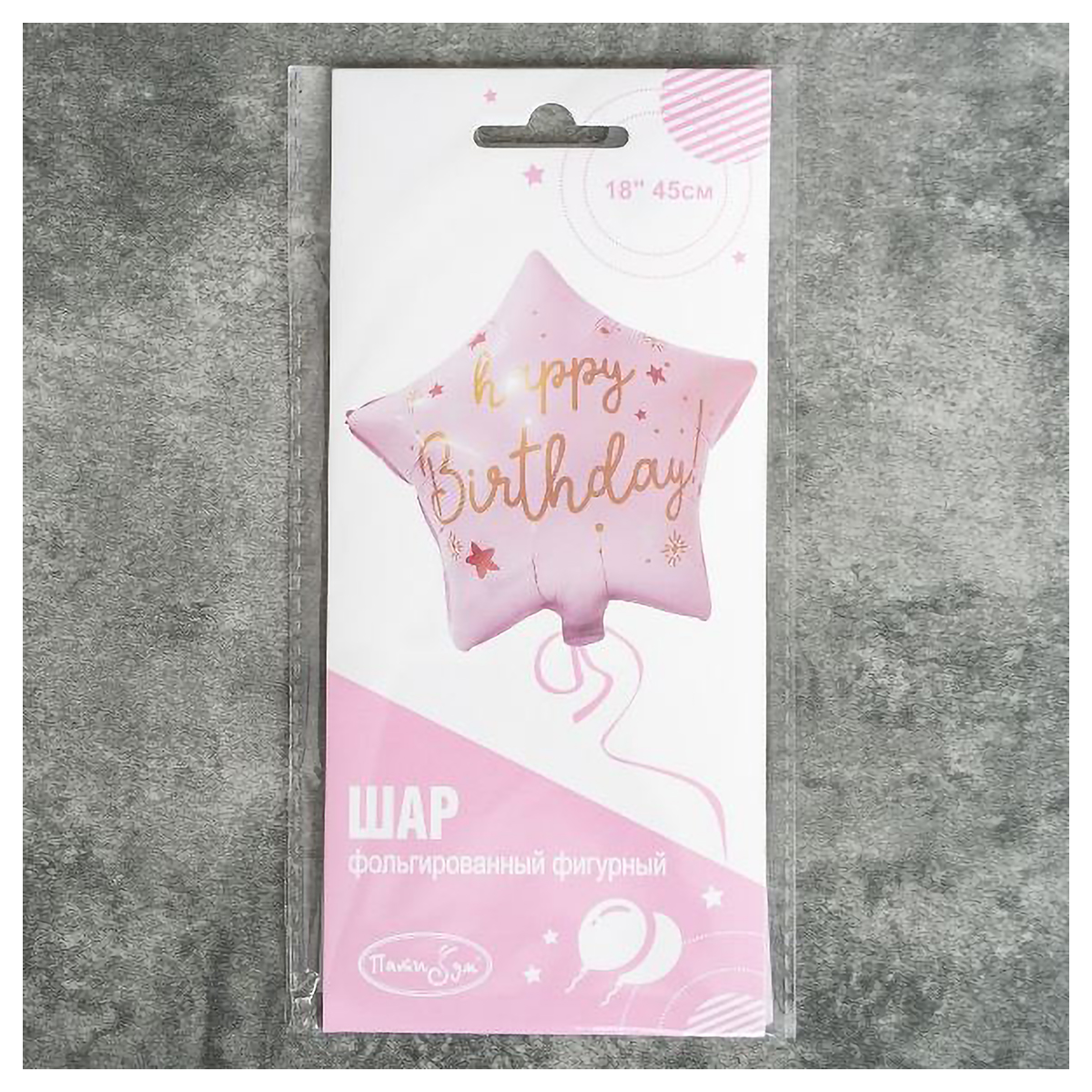 "Патибум" Шар фольгированный 1 шт. Звезда Happy Birthday, розовая 18"/45см 6081881