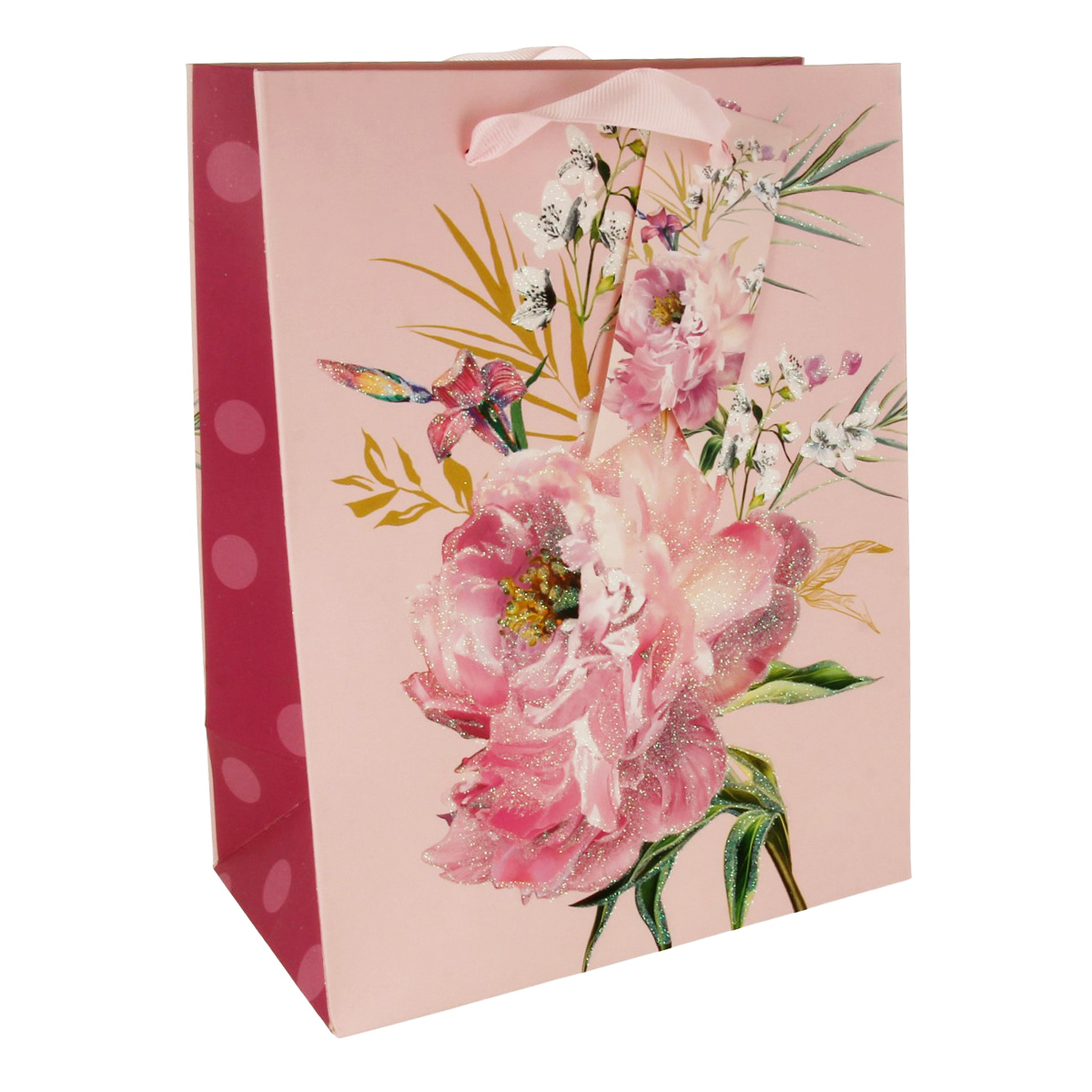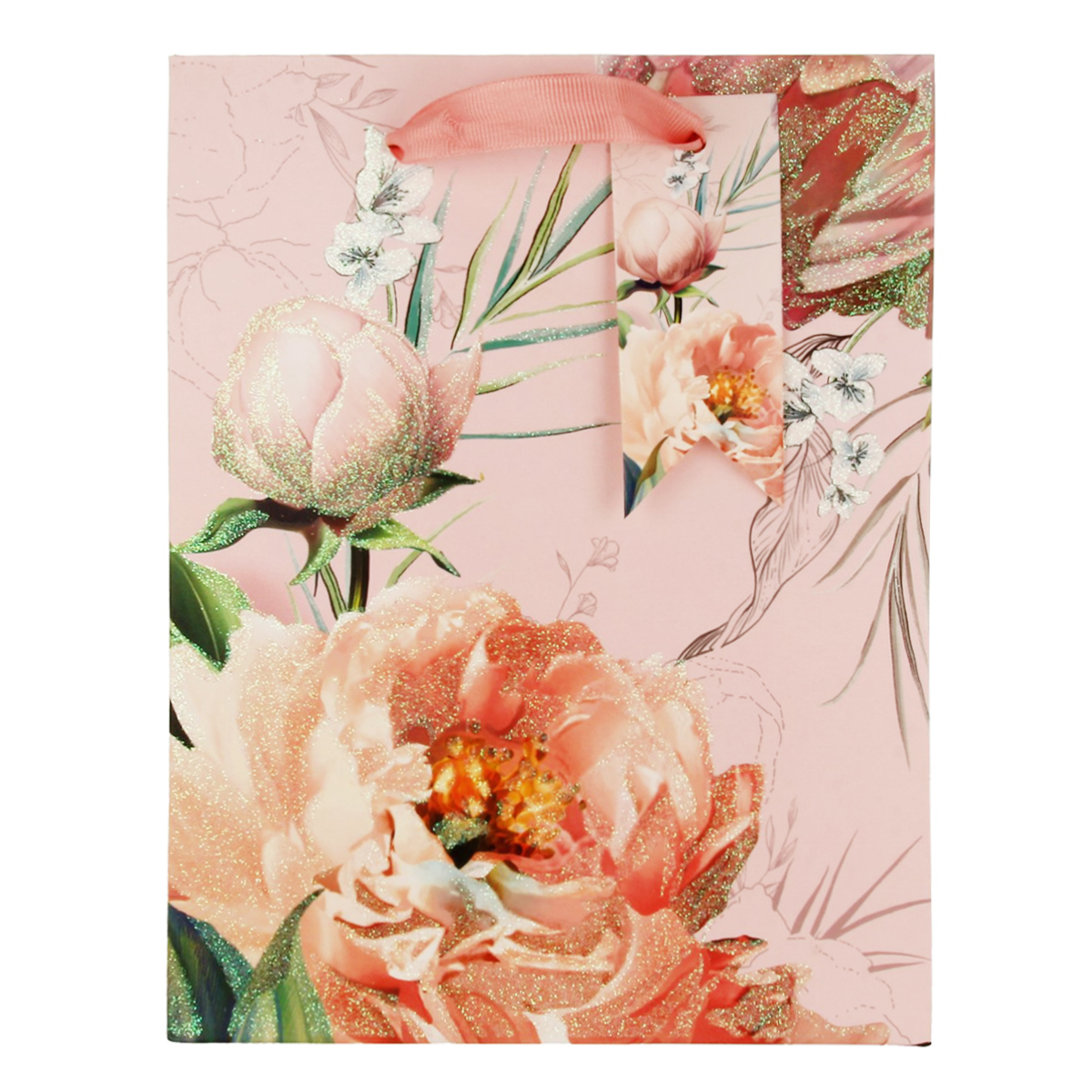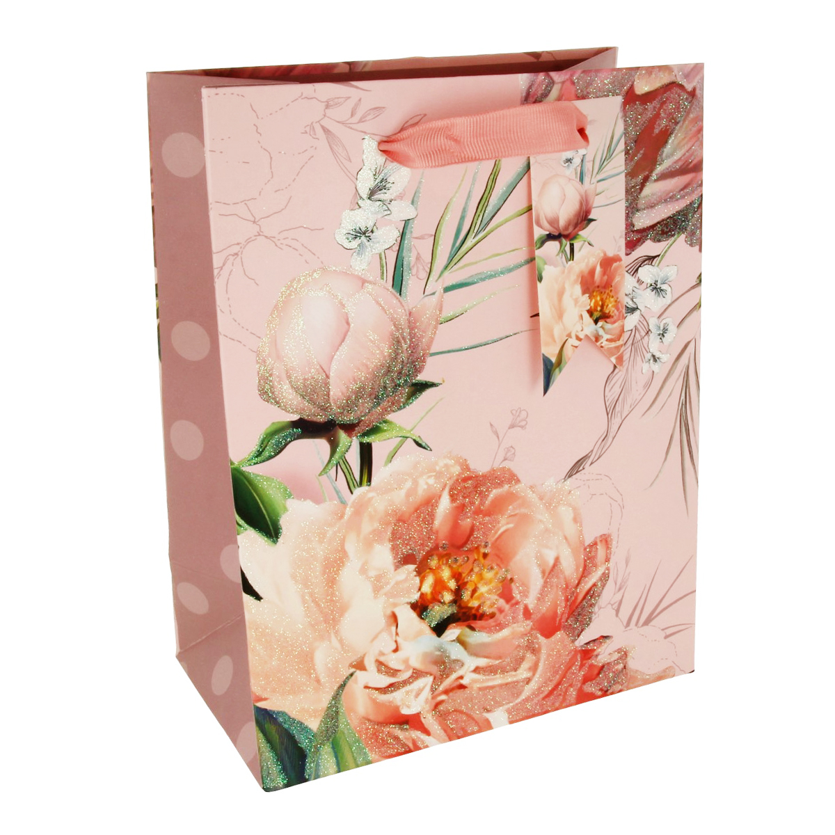 Пакет подарочный цветы с глиттером 18 х 23 х 10 см F1057