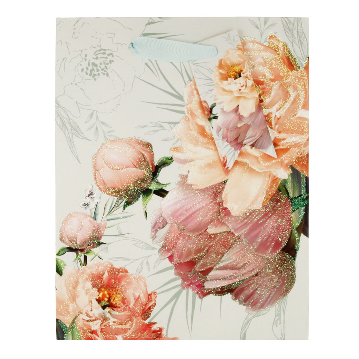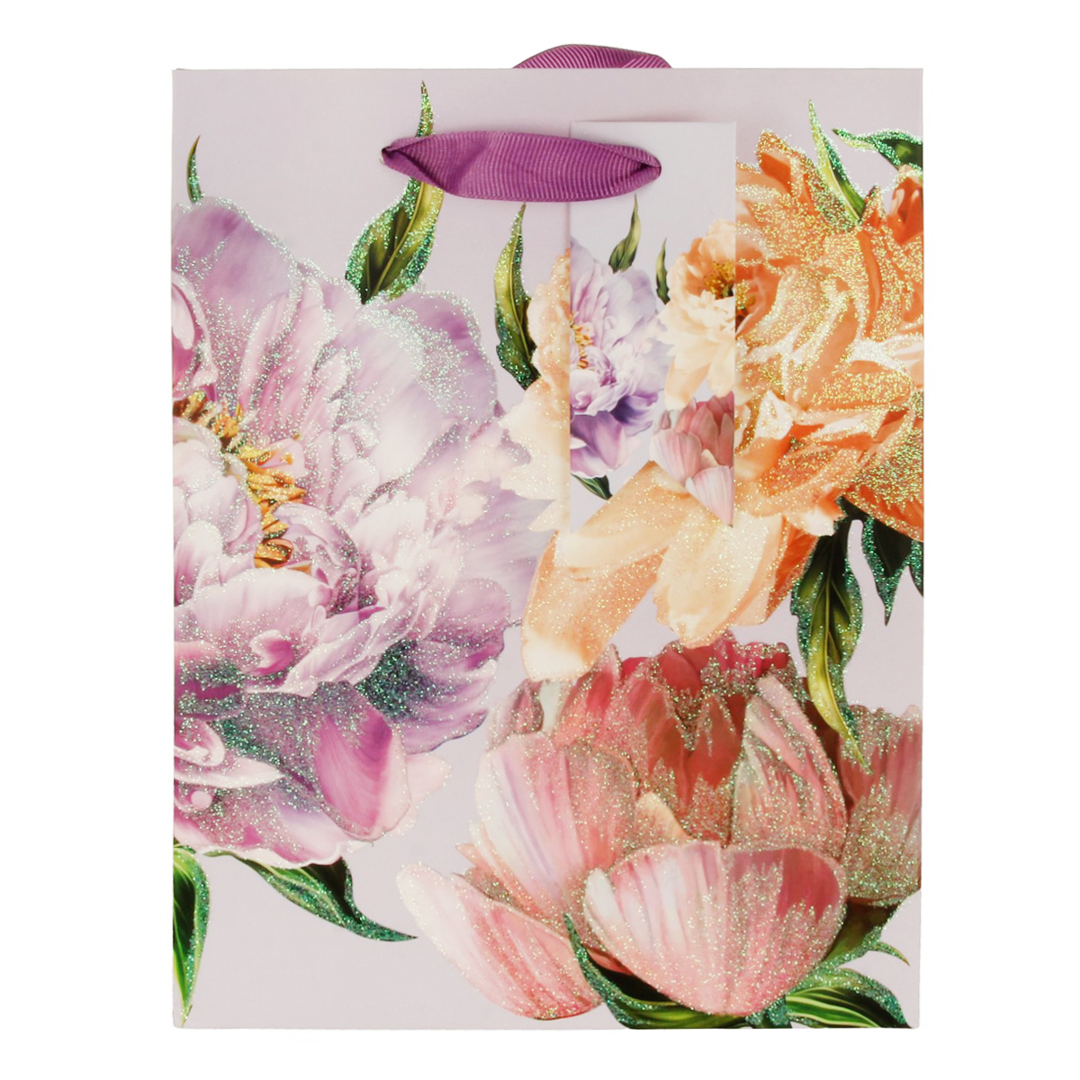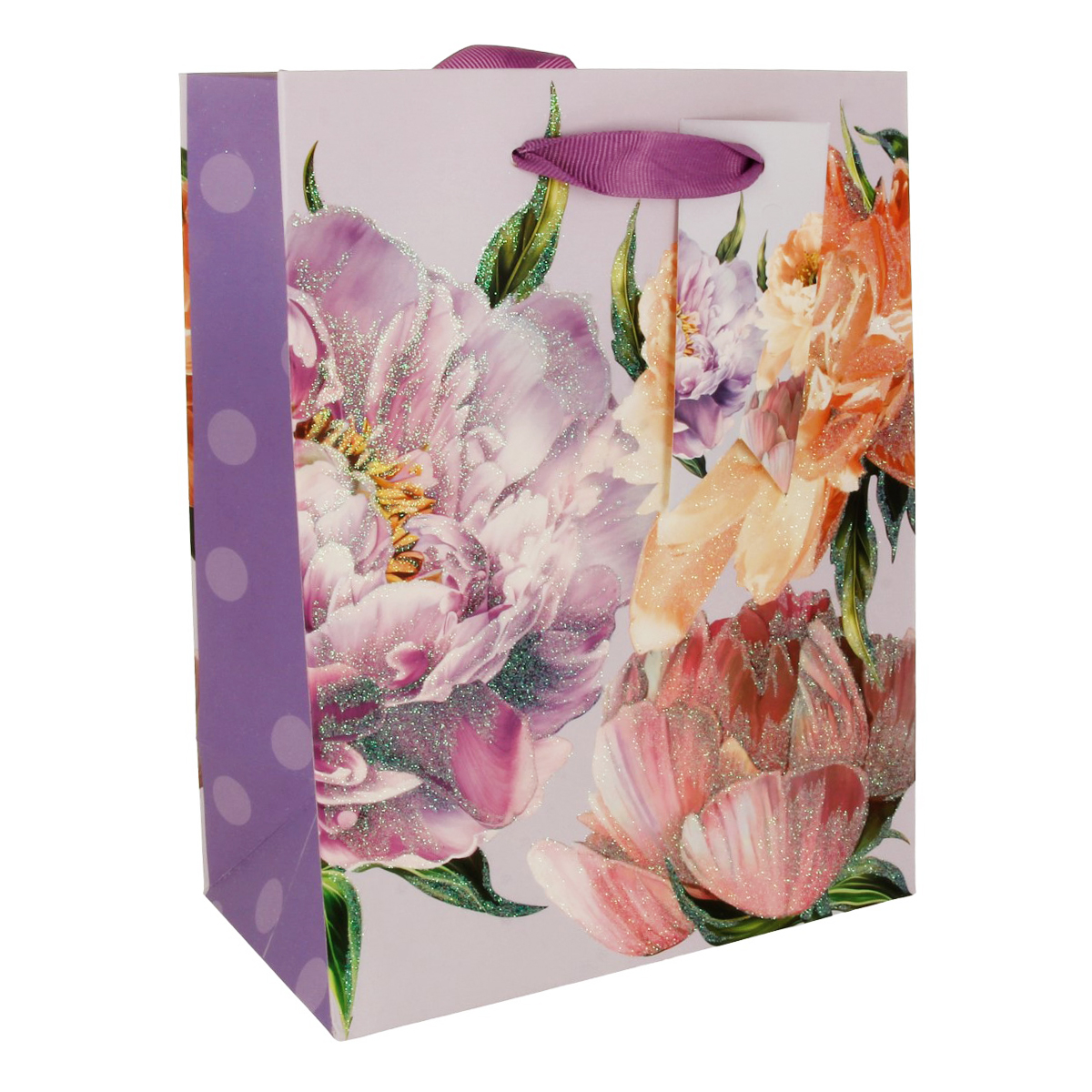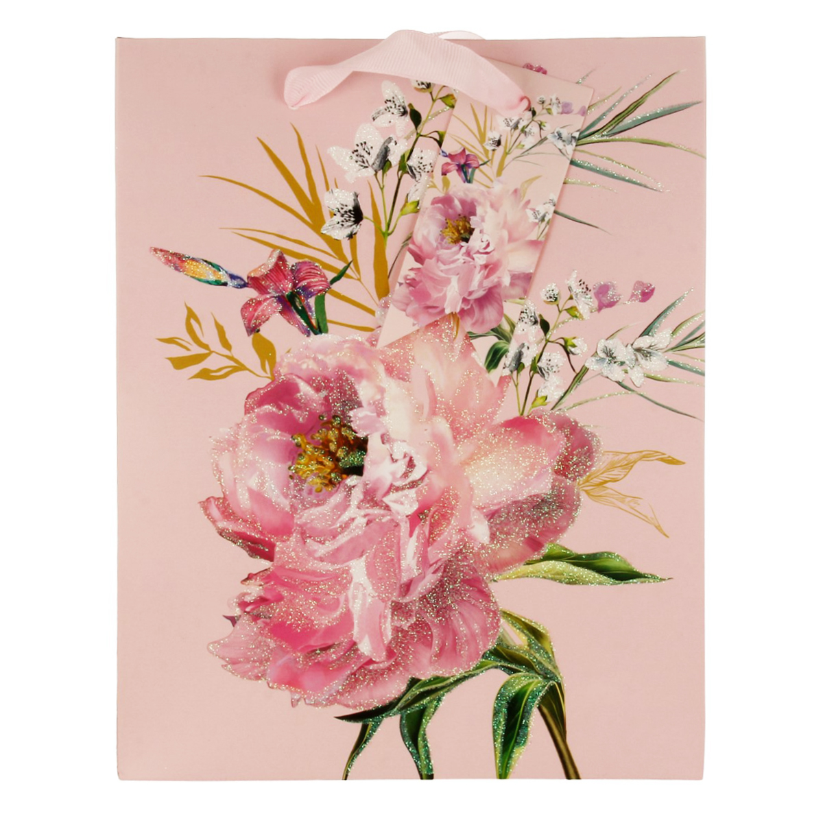 Пакет подарочный цветы с глиттером 18 х 23 х 10 см F1057