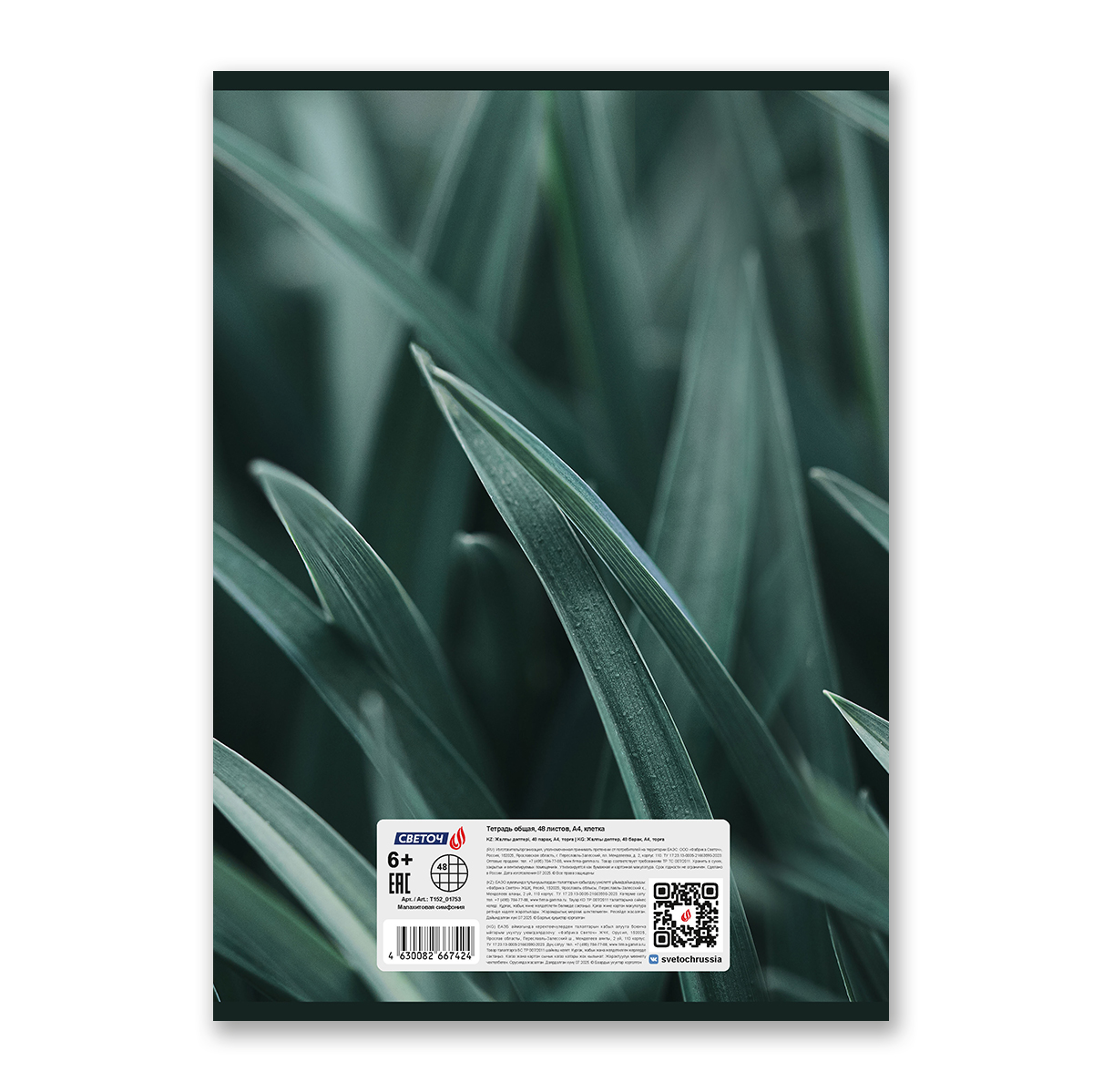Светоч Т152 Тетрадь ученическая общая, A4 48 л. на скобе 65 г/кв.м , белизна 100 % клетка 01753 Малахитовая симфония Фото 7.