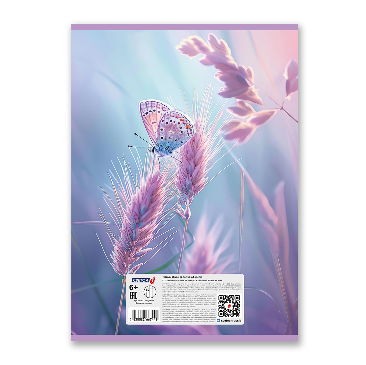 "Светоч" Т154 Тетрадь ученическая общая, A4 80 л. на скобе 65 г/кв.м , белизна 100 % клетка 01758 Встречая рассвет