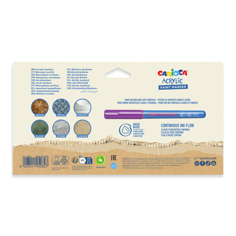CARIOCA Paint Marker идеально подходит для декорирования интерьеров, создания индивидуальных подарков или просто для развития творческих способностей. Просто выберите желаемый цвет и начните воплощать свои идеи на любой поверхности!
