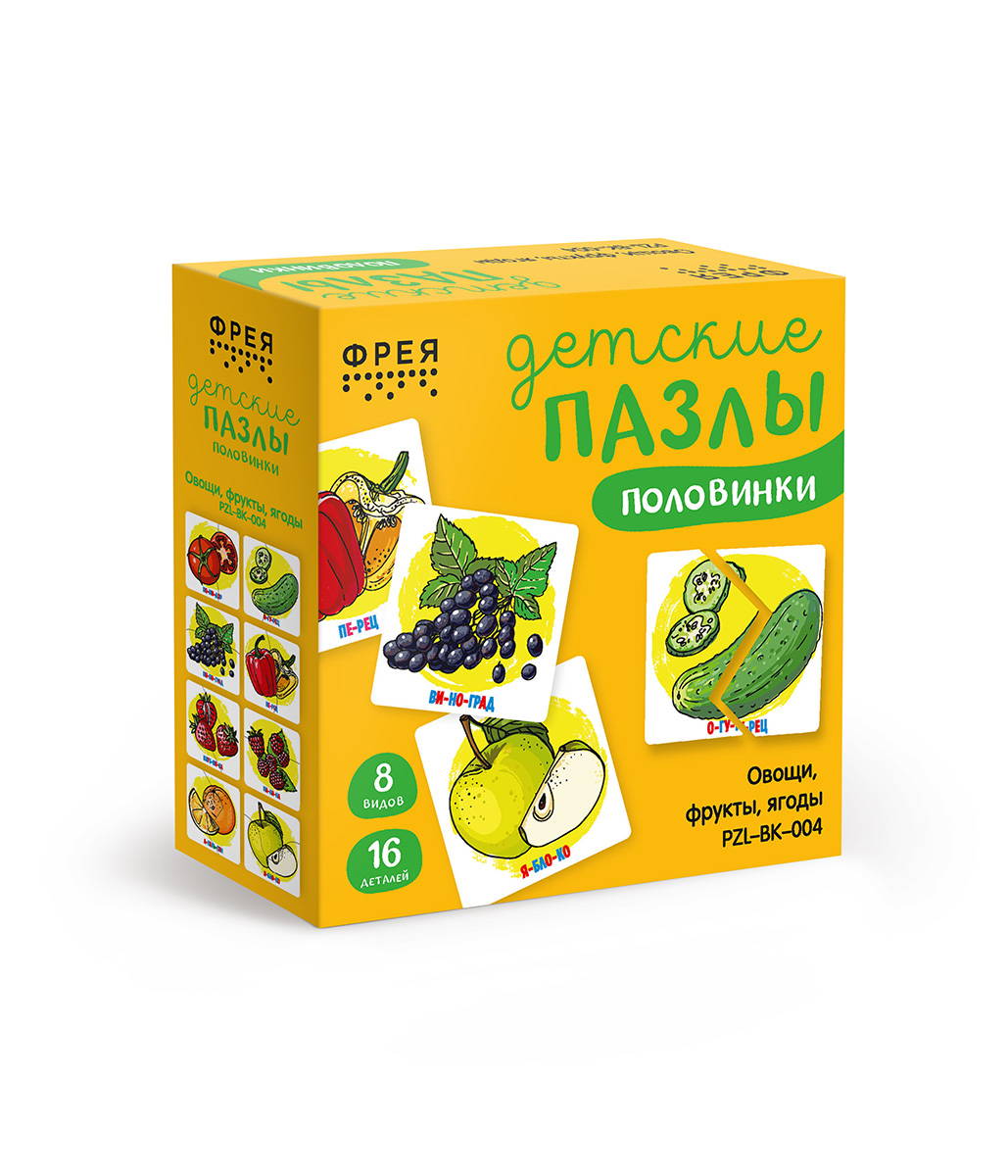 "ФРЕЯ" PZL-BК-004 Пазлы-половинки для малышей "Овощи, фрукты, ягоды" 16 элемент. .