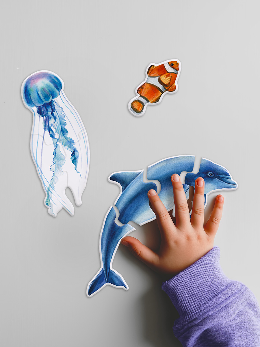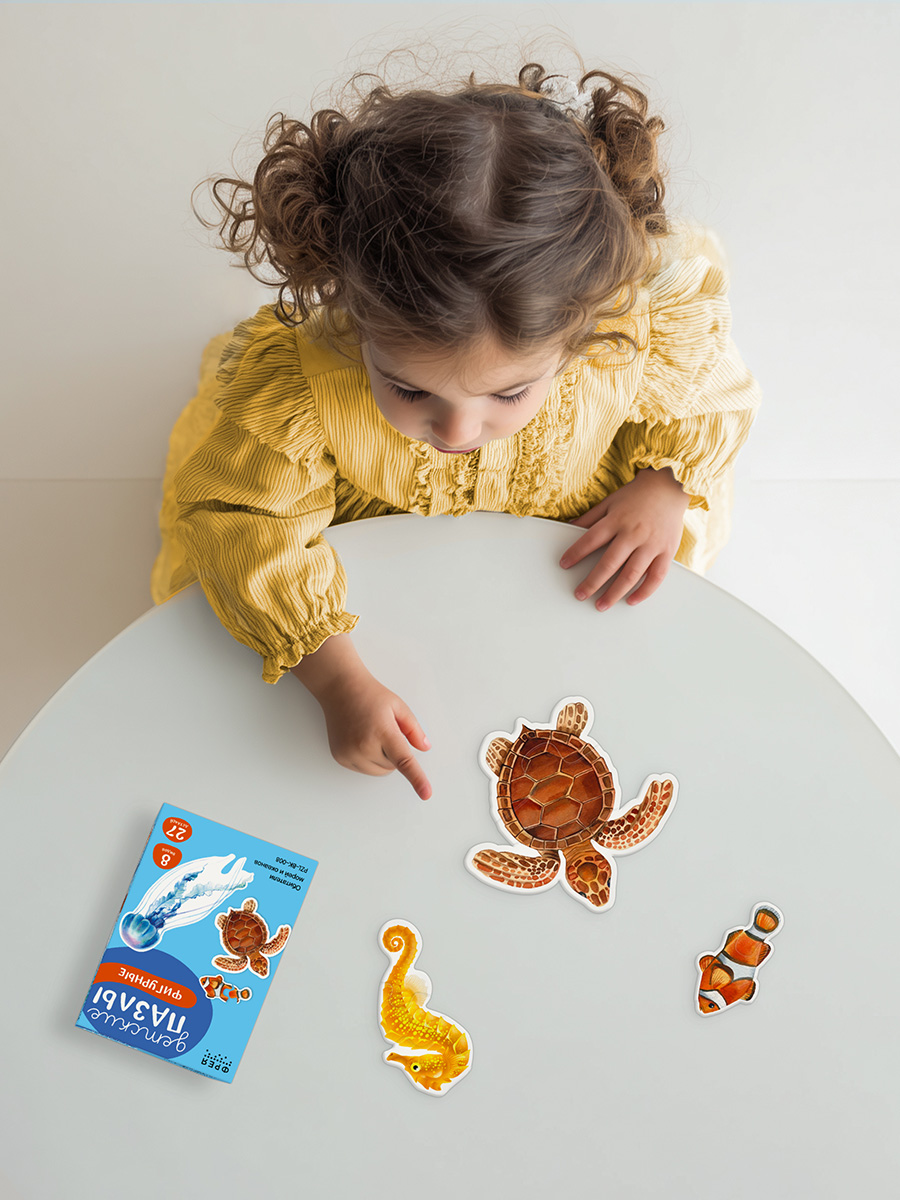 Наши беби-пазлы созданы специально для любознательных малышей: крупные детали удобно держать в ручке, а яркие изображения сразу привлекают внимание. Собирая пазлы, ребенок не просто играет — он развивает мелкую моторику, внимание, логику и речь. Фигурные пазлы, состоящие из нескольких элементов, учат ребенка собирать цельный образ из частей и развивают пространственное мышление. Набор содержит 8 фигурок, состоящих из 3–4 частей. Размеры собранных изображений: от 9 до 20 см.