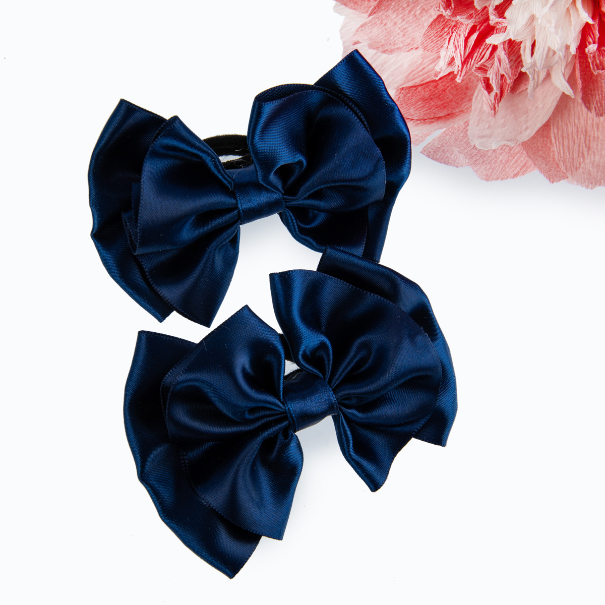 Объемный бант из атласной ленты смотрится нарядно и аккуратно, прочная резинка диаметром 3.5см надежно фиксирует волосы.