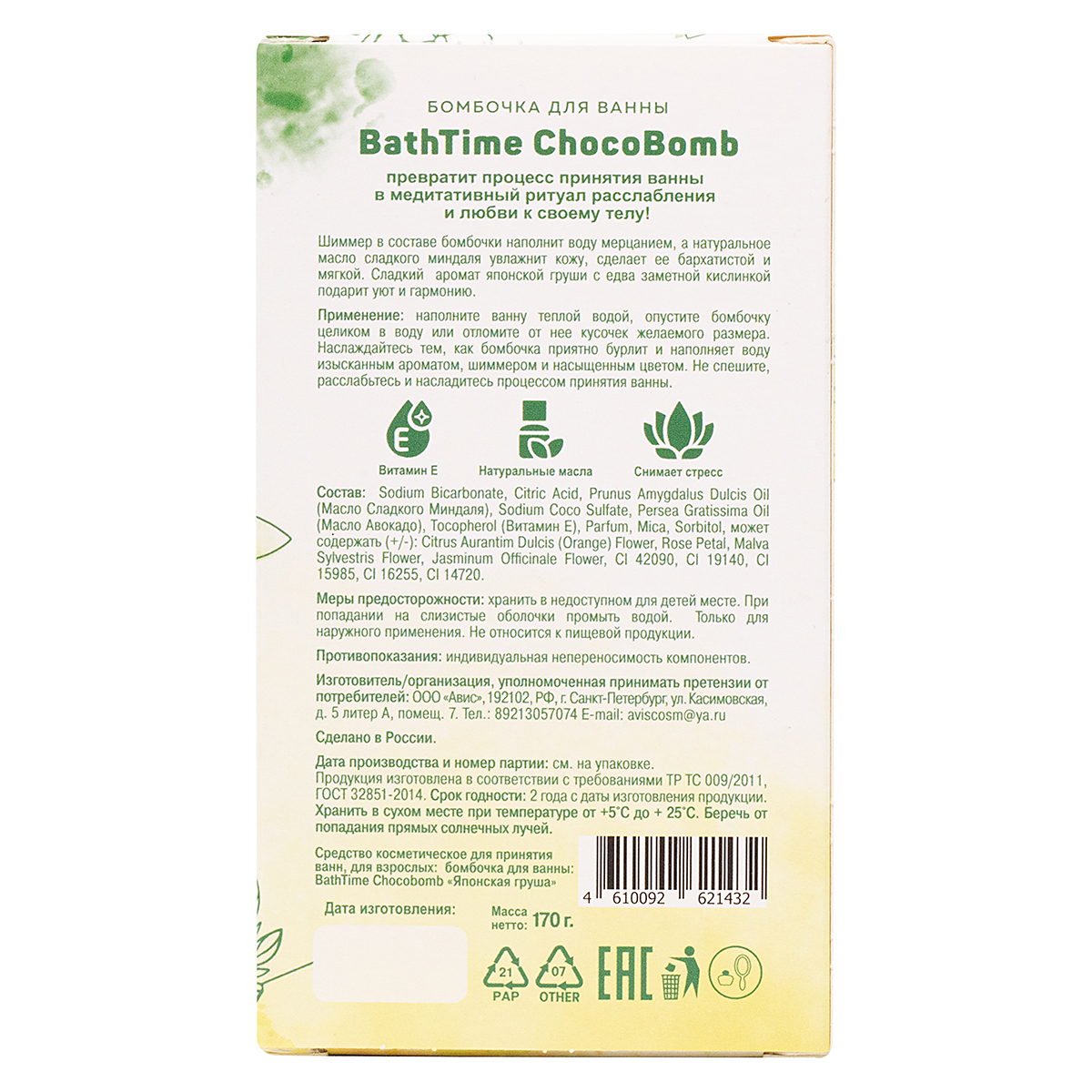 "BathTime" Бомбочка для ванны "Chocobomb" 190 г Японская груша BT050