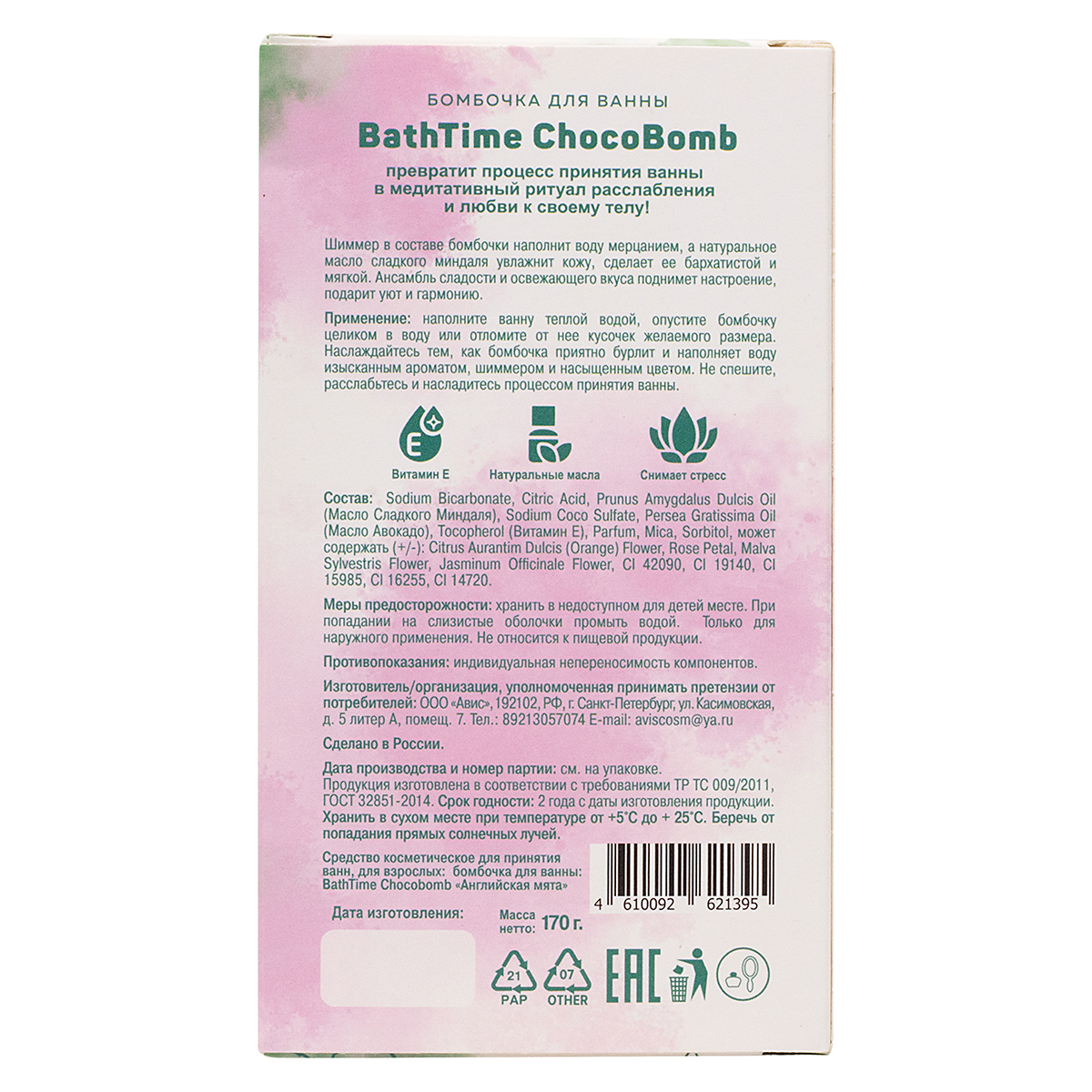 "BathTime" Бомбочка для ванны "Chocobomb" 190 г Английская мята BT046