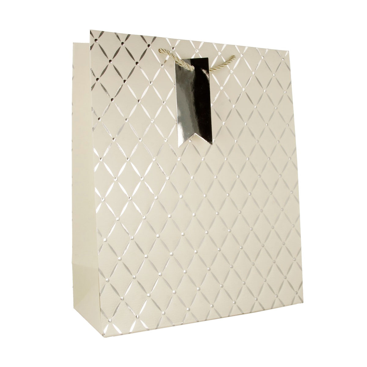 Пакет подарочный 26 х 32 х 12 см с графическим рисунком ромбыс серебрянным тиснением L574 Фото 1.