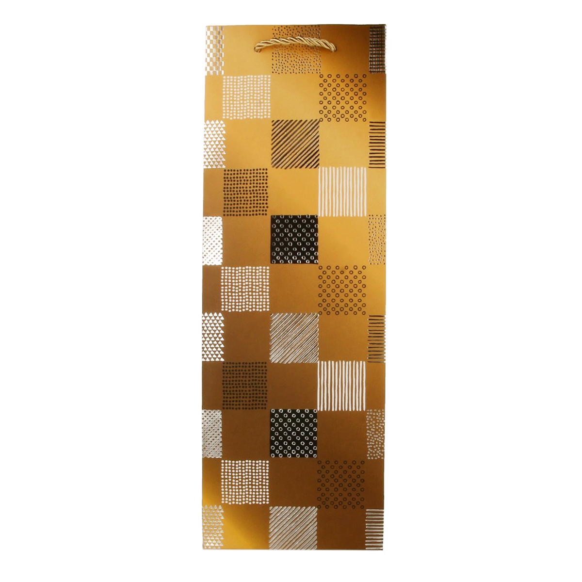 Пакет подарочный 11 х 38 х 11 см с графическим рисунком "квадраты" с золотым тиснением L250