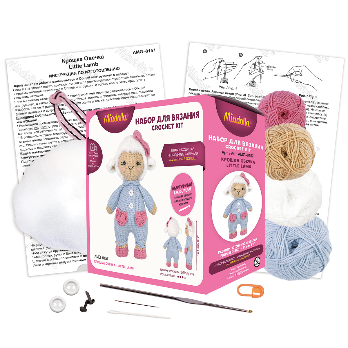 В набор входят все необходимые материалы для изготовления игрушки: пряжа , пушистая пряжа , крючок для вязания 2.5 мм, глаза, маркировочное кольцо, пластиковая игла, хлопчатобумажные нитки мулине Gamma, пуговицы, синтепух, подробная инструкция с картинками.