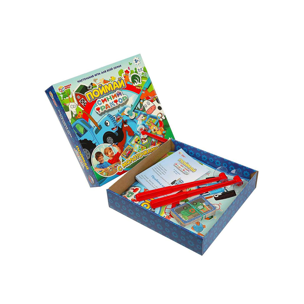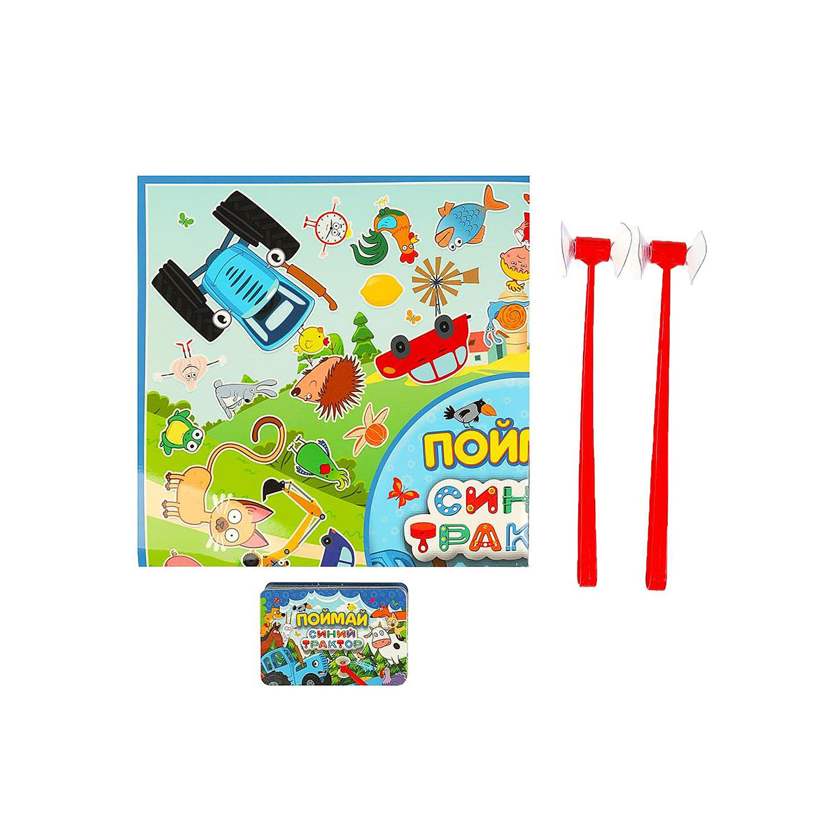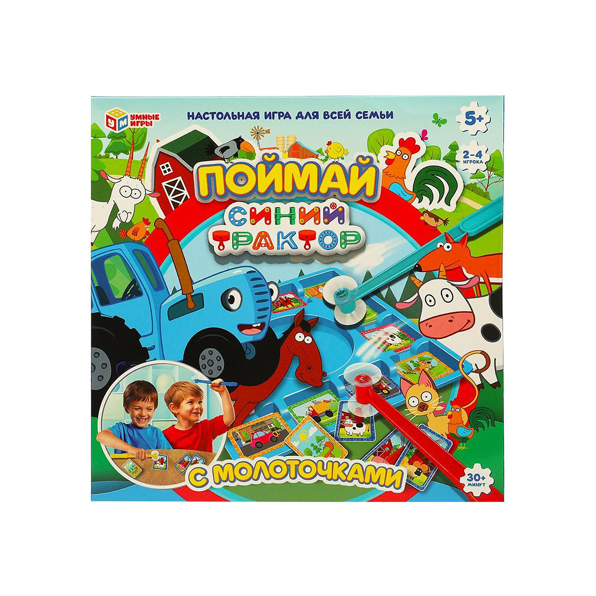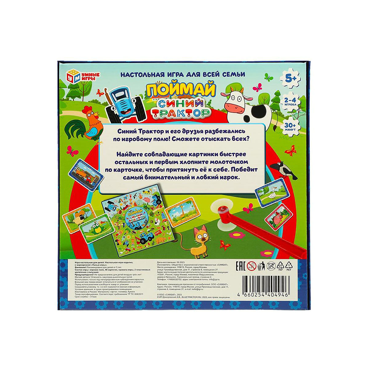 Синий Трактор и его друзья разбежались по игровому полю! Сможете отыскать всех? Во время хода найдите совпадающие картинки быстрее остальных и первым хлопните молоточком по карточке, чтобы притянуть её к себе. Игра заканчивается, когда изображения со всех карточек найдены. Победит самый внимательный и ловкий игрок. В состав игры входят 4 игрушечных молоточка.