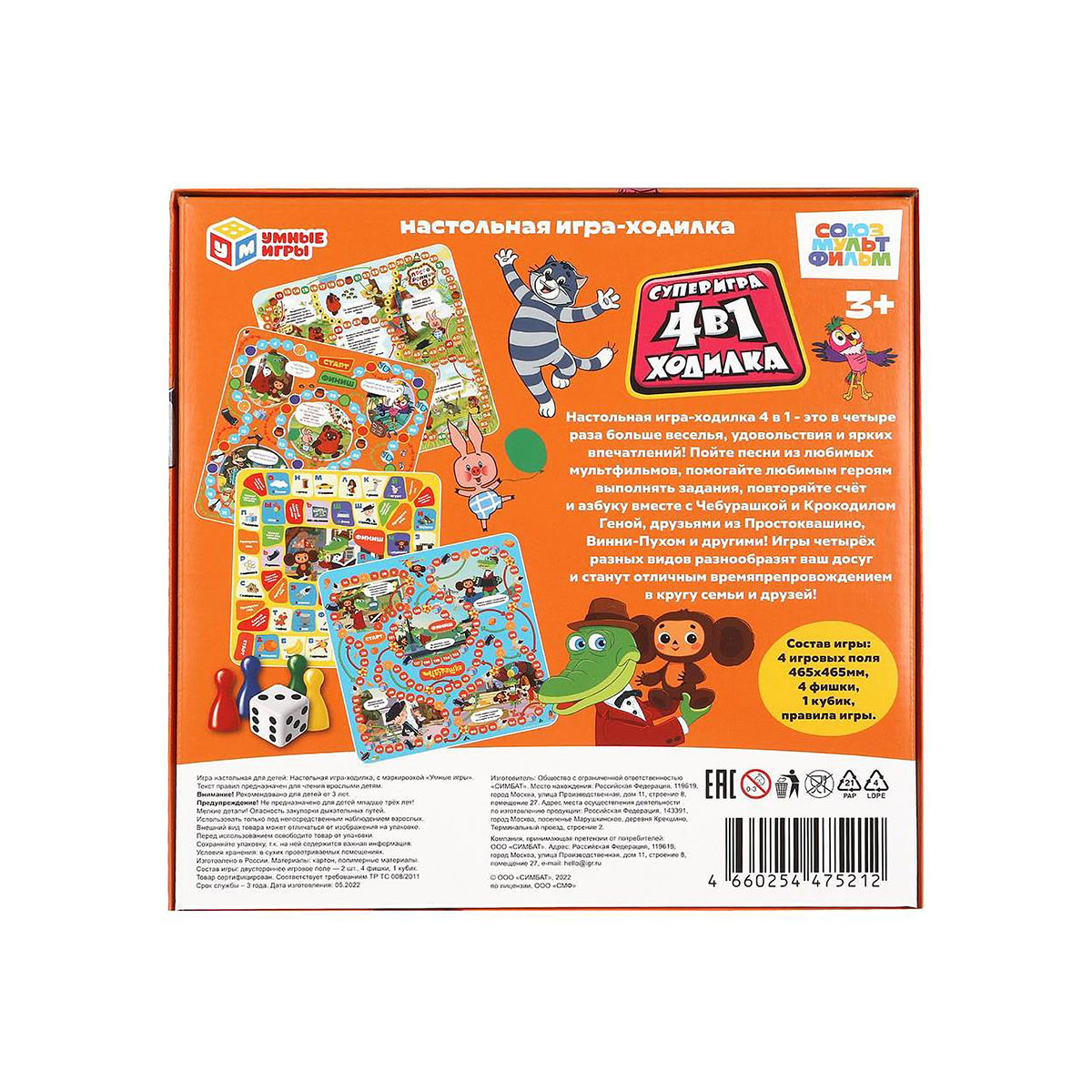 Настольные игры-ходилки 4 в 1 «Союзмультфильм. Весёлые приключения» ТМ «Умные игры» – сразу несколько игр в одной коробке для весёлого досуга малыша!