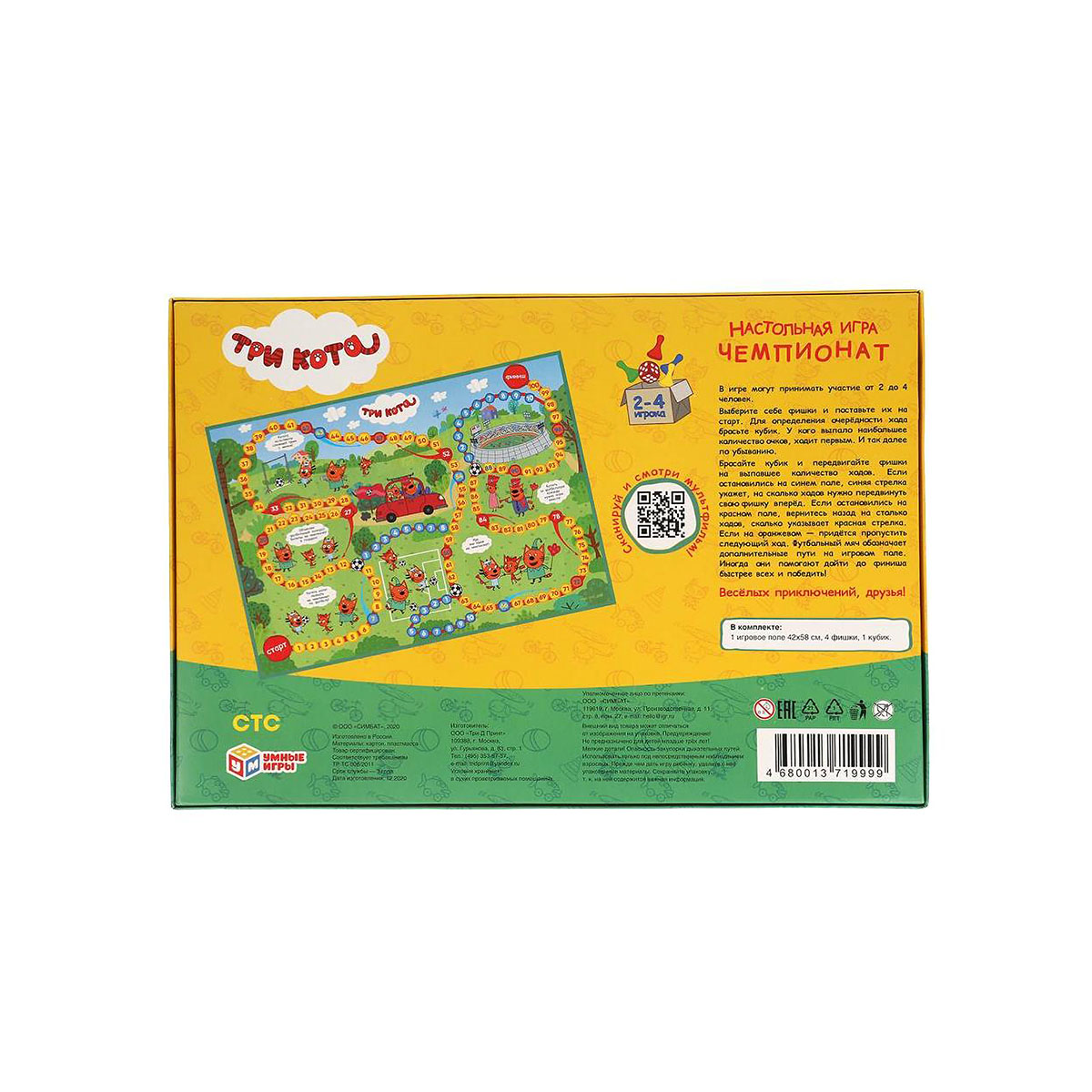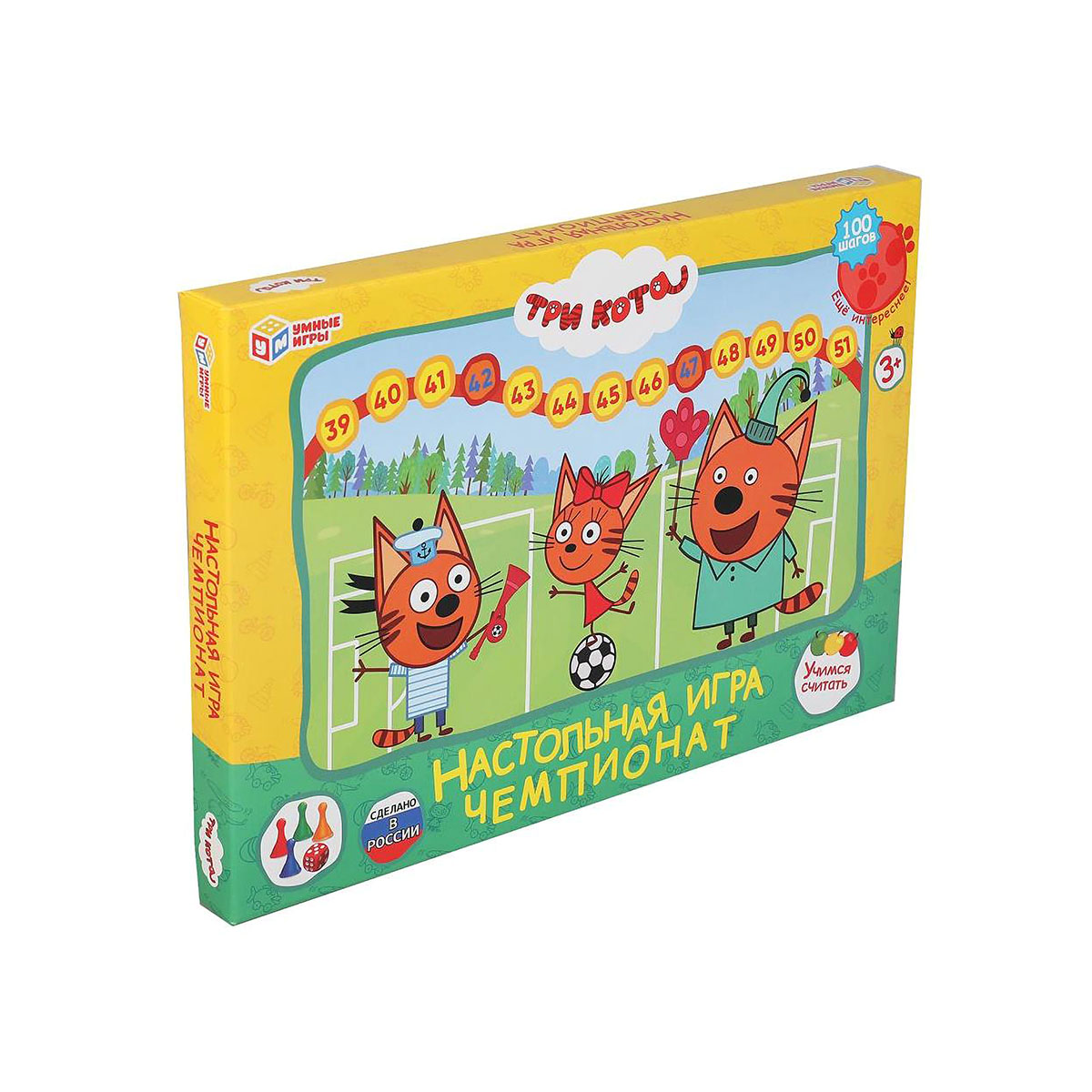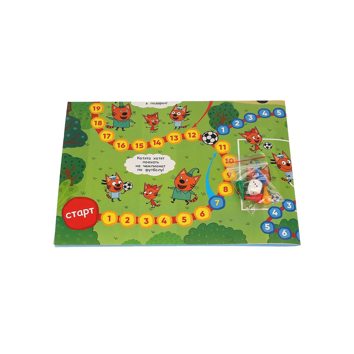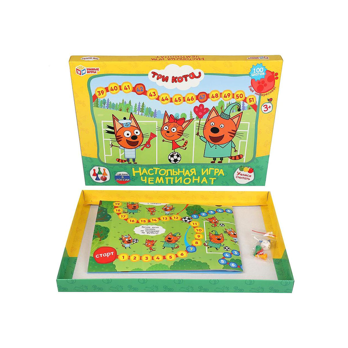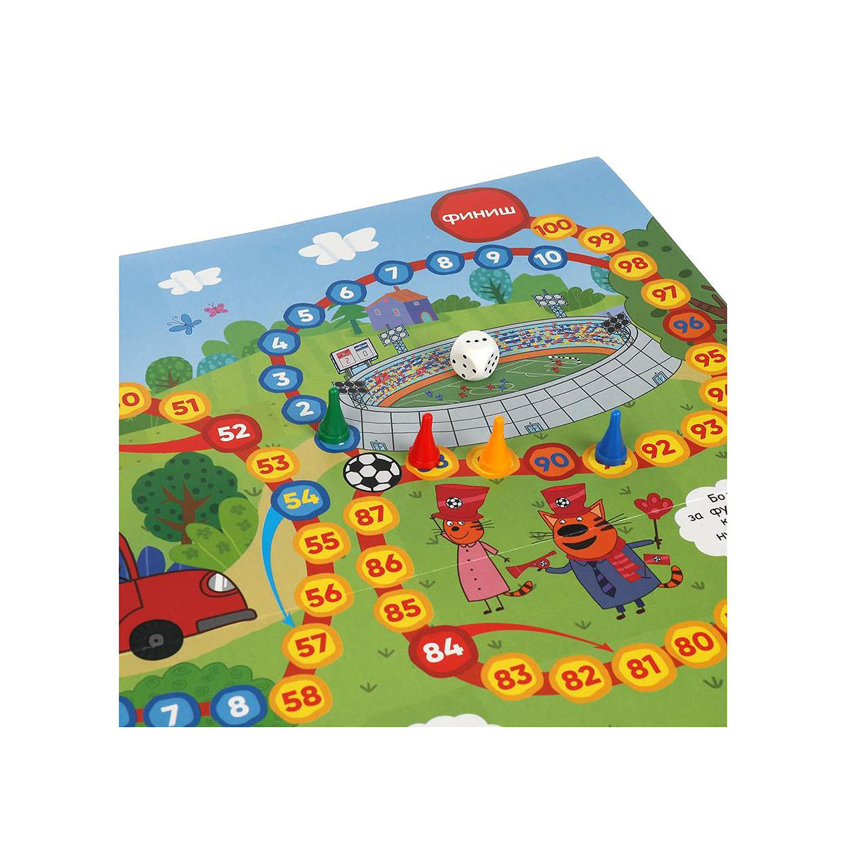 Настольная игра мега-ходилка «Три кота. Чемпионат» ТМ «Умные игры» – это увлекательное путешествие в мир цифр вместе с героями любимого мультсериала.