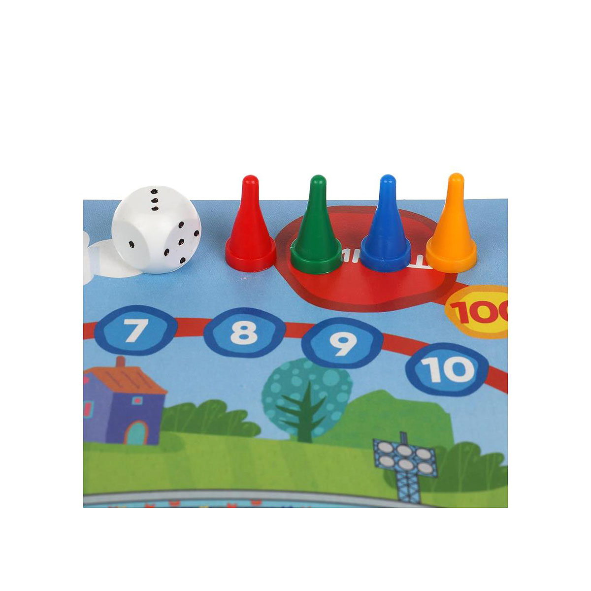 Цель игры: участники кидают кубик и ходят вперёд на выпавшее количество клеток, стремясь первым попасть на финиш и выиграть. В процессе игры необходимо преодолевать препятствия, пропускать ход, возвращаясь на ранее занимаемую позицию или перескакивать вперёд на один или несколько ходов. В итоге, ребёнок научится играть по правилам, соблюдать очередность ходов, выигрывать и проигрывать без слёз.
