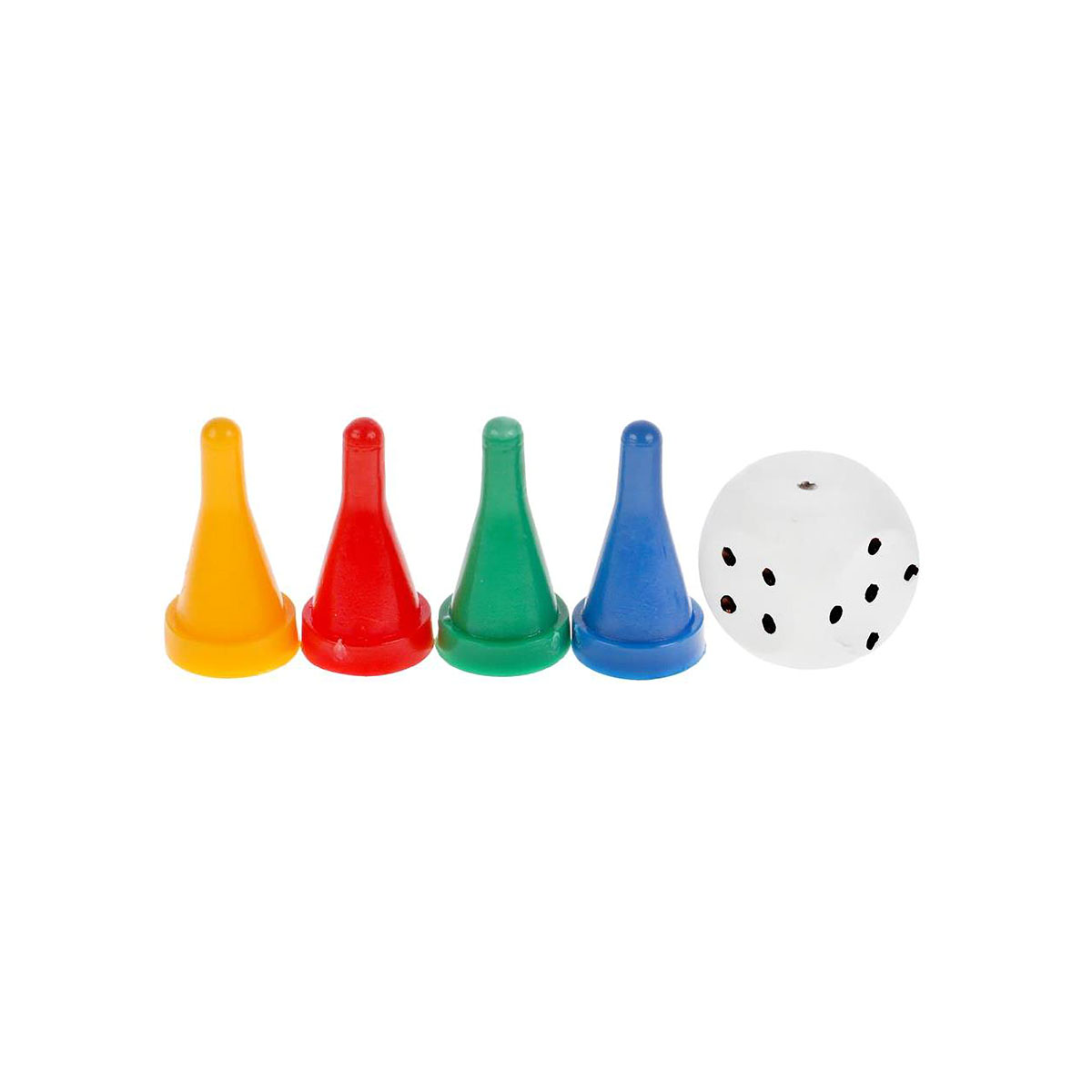 В наборе: - красочное игровое поле - 4 разноцветные фишки - игровой кубик - правила игры