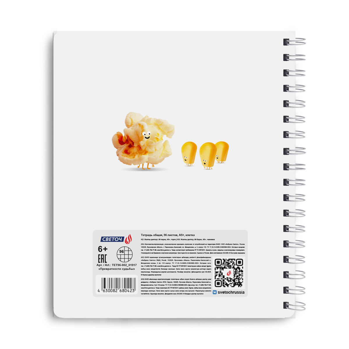 Светоч ТЕТ96-002 Тетрадь общая с запечатан. пластик. обложкой, 500 мкм., A5 96 л. на гребне 65 г/кв.м , белизна 100 % клетка 01917 Превратности судьбы Фото 1.