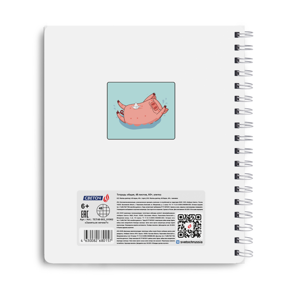 Светоч ТЕТ48-003 Тетрадь общая с запечатан. пластик. обложкой, 500 мкм., A5 48 л. на гребне 65 г/кв.м , белизна 100 % клетка 01902 Заняться нечем? Фото 3.
