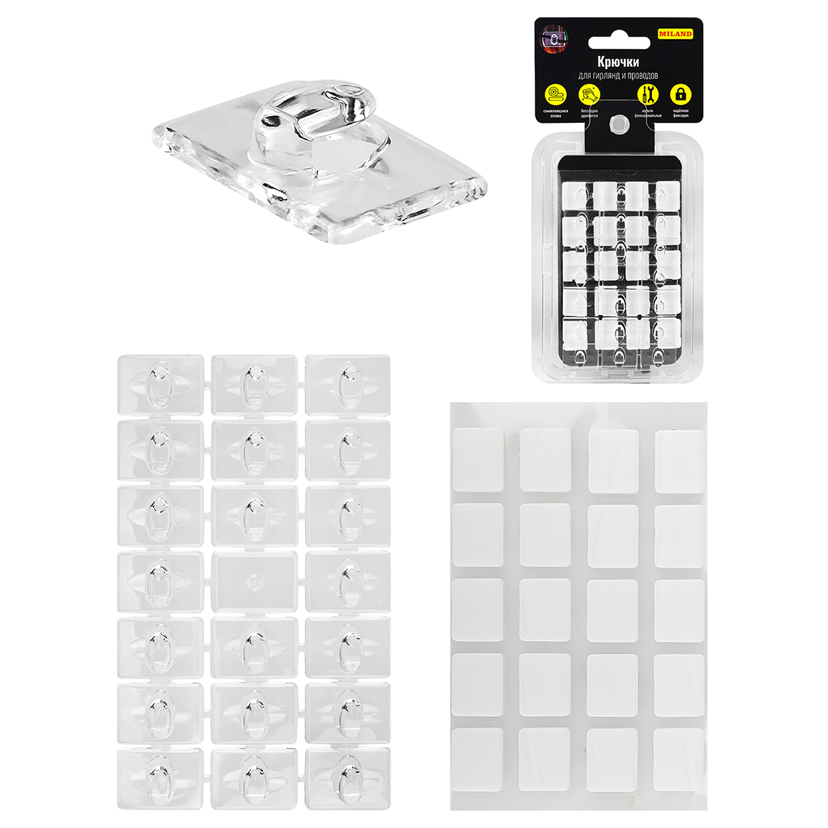"MILAND" Набор самоклеющихся крючков для гирлянд 20 шт. 1.3х1.9 см прозрачные СКЧ-3217