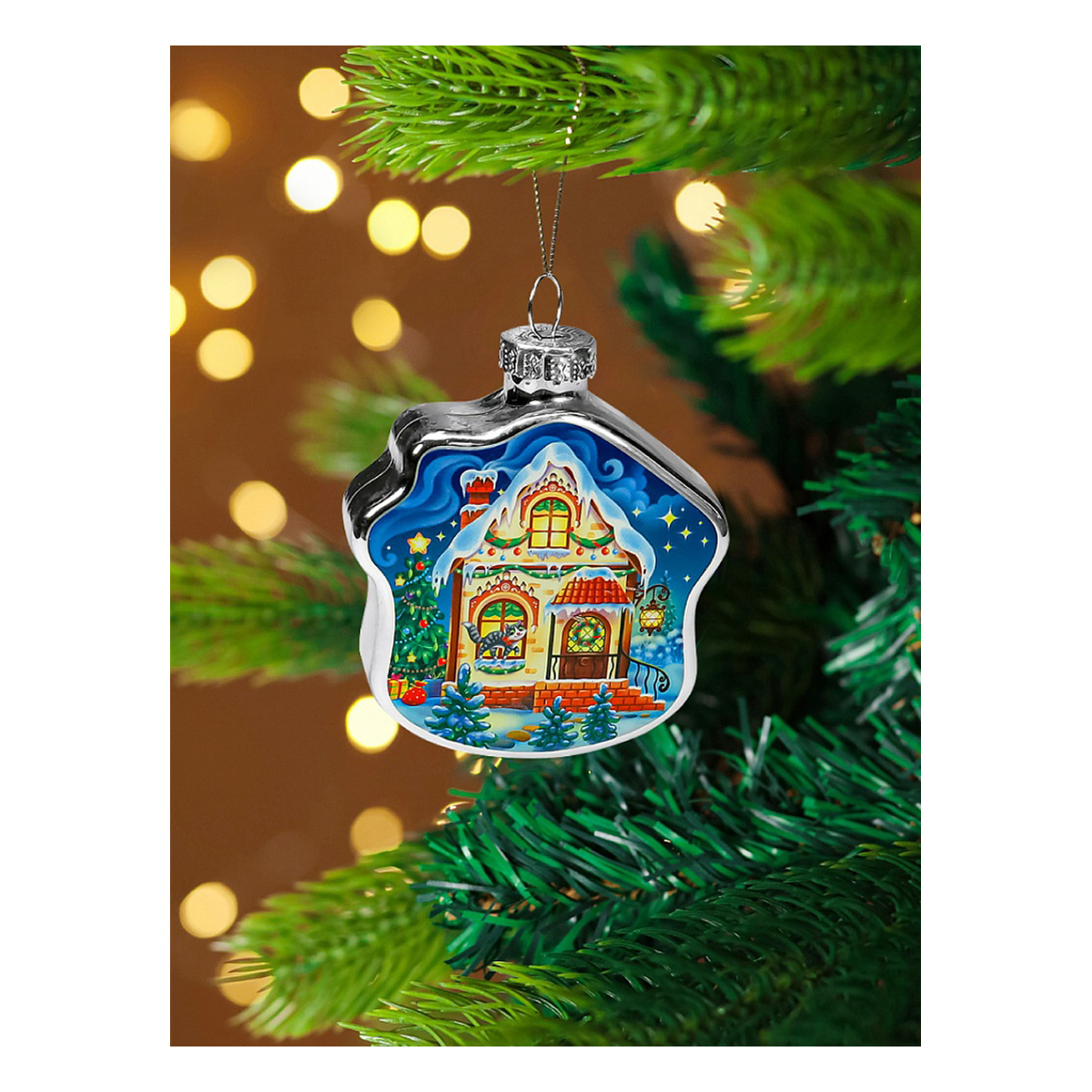 MILAND Елочное украшение из стекла D. 8 см Праздничный домик ЕШ-4279 Фото 1. MILAND Елочное украшение из стекла D. 8 см Праздничный домик ЕШ-4279 Фото 2.