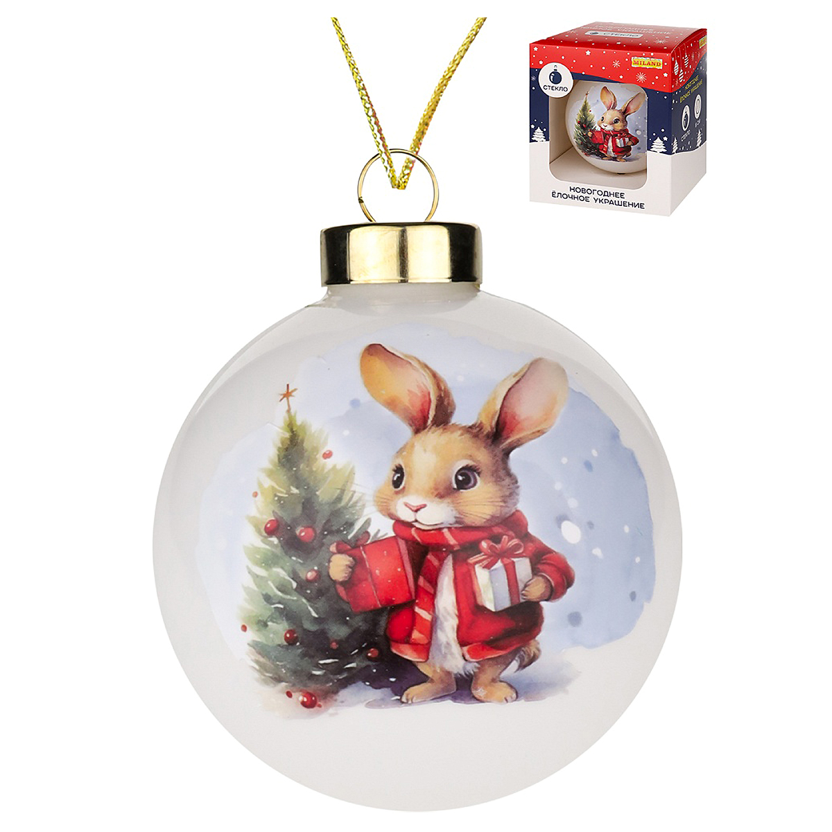 "MILAND" Шар "Новогодний зайчонок" D. 8 см НУ-7634