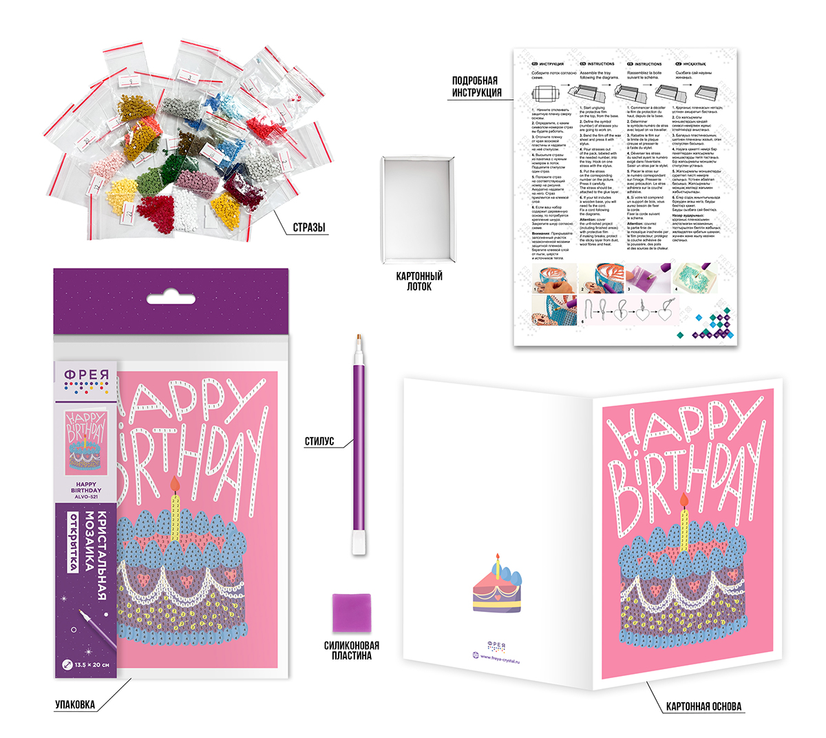 Кристальная (алмазная) мозаика  ФРЕЯ ALVO-521 открытка Happy birthday 13.5 х 20 см Фото 5.