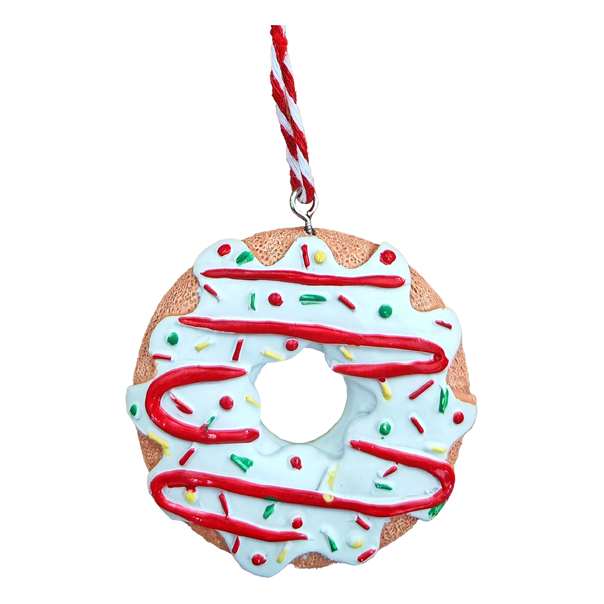 Эта елочная игрушка выглядит настолько реалистично, что хочется её съесть! Детализированный пряничный пончик с аккуратной росписью станет прекрасным дополнением вашей ёлки. Подвесное елочное украшение выполнено из полирезины, размер игрушки: 6 х 6 х 1 см.