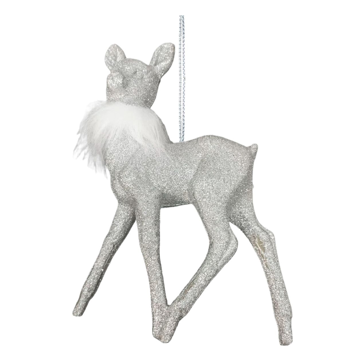 Эта очаровательная елочная игрушка изготовлена из прочного и легкого пластика. Игрушка выполнена в форме оленя, имеет серебряный цвет. Такое украшение сделает вашу елку по-настоящему праздничной. Идеально подходит для создания уютной атмосферы в доме. Размер игрушки: 22,5 х 16 х 5 см.