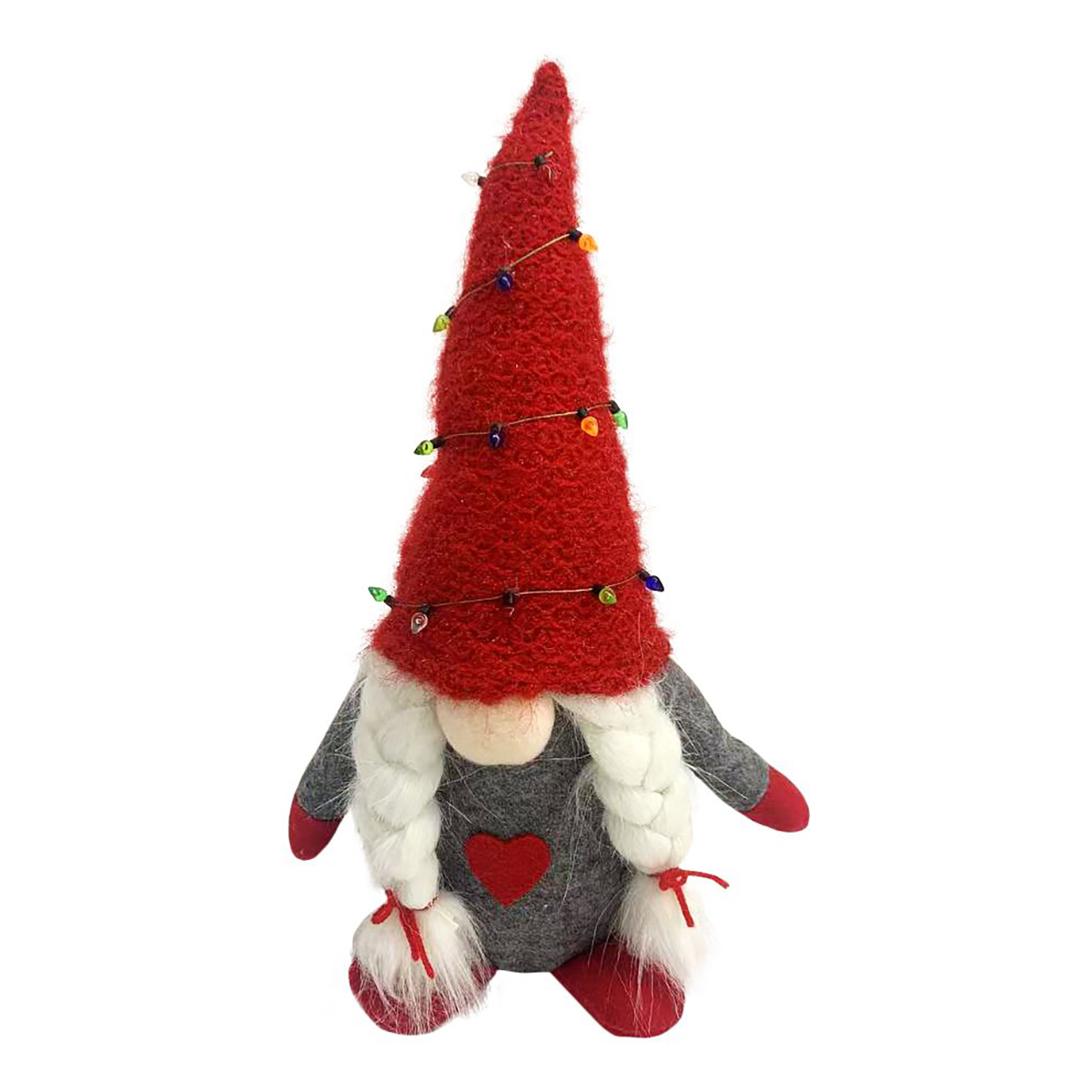 Милый новогодний гном для создания праздничного настроения в вашем доме. Пушистые косы, яркий колпачок и добродушный вид - идеальное украшение для вашего новогоднего интерьера. Размер игрушки 15х13х30 см.