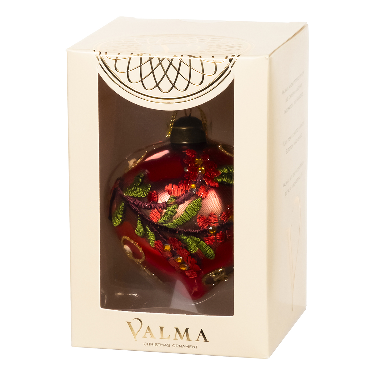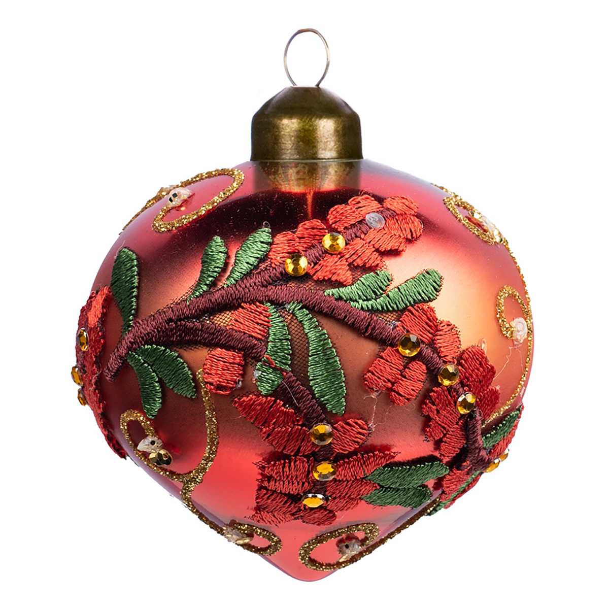 Новогоднее елочное красное украшение - это идеальный вариант подарка в качестве праздничного сувенира. Игрушка станет отличным украшением на елке, дополнит собой праздничный интерьер и просто будет радовать окружающих. Выполнена из стекла и полиэстра.