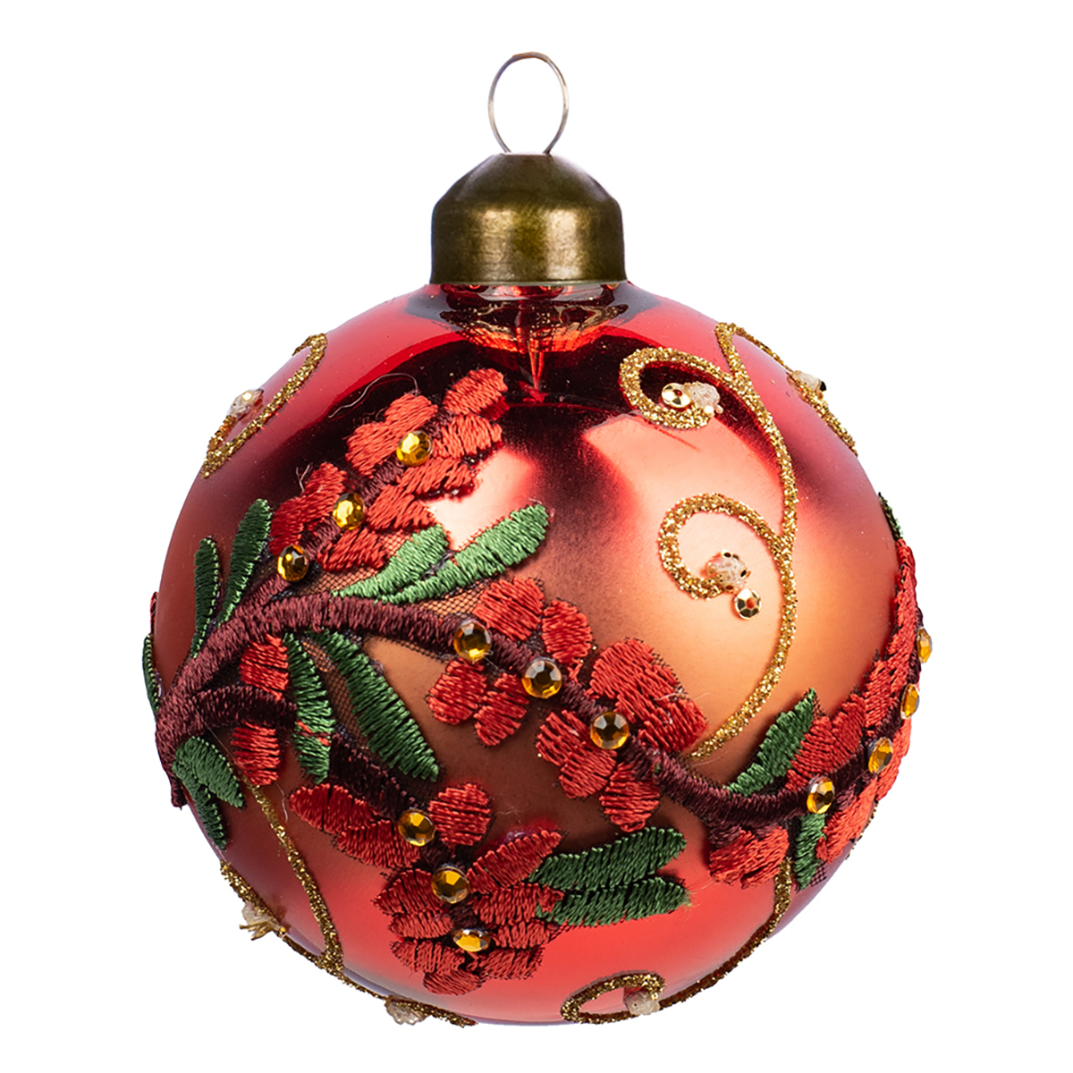 Новогоднее елочное украшение в виде красного шарика - это идеальный вариант подарка в качестве праздничного сувенира. Шарик станет отличным украшением на елке, дополнит собой праздничный интерьер и просто будет радовать окружающих. Выполнен из стекла и полиэстра.
