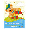 Цветная веселая мелованная бумага с рисунком, 8 листов, 8 цветов, формат А4, плотность 60 гр/м2. Внутренний блок - мелованная бумага двойного прокраса, что дает насыщенность цвета. В наборе каждый лист с одной стороны окрашен в цвет, а на обороте нанесен рисунок: красный/розы, зеленый/мишки, салатовый/узоры, оранжевый/бабочки, голубой/кошки, синий/морская тематика, коричневый/собаки, розовый/сердечки. Крепление - скоба, обложка - мелованный картон.
