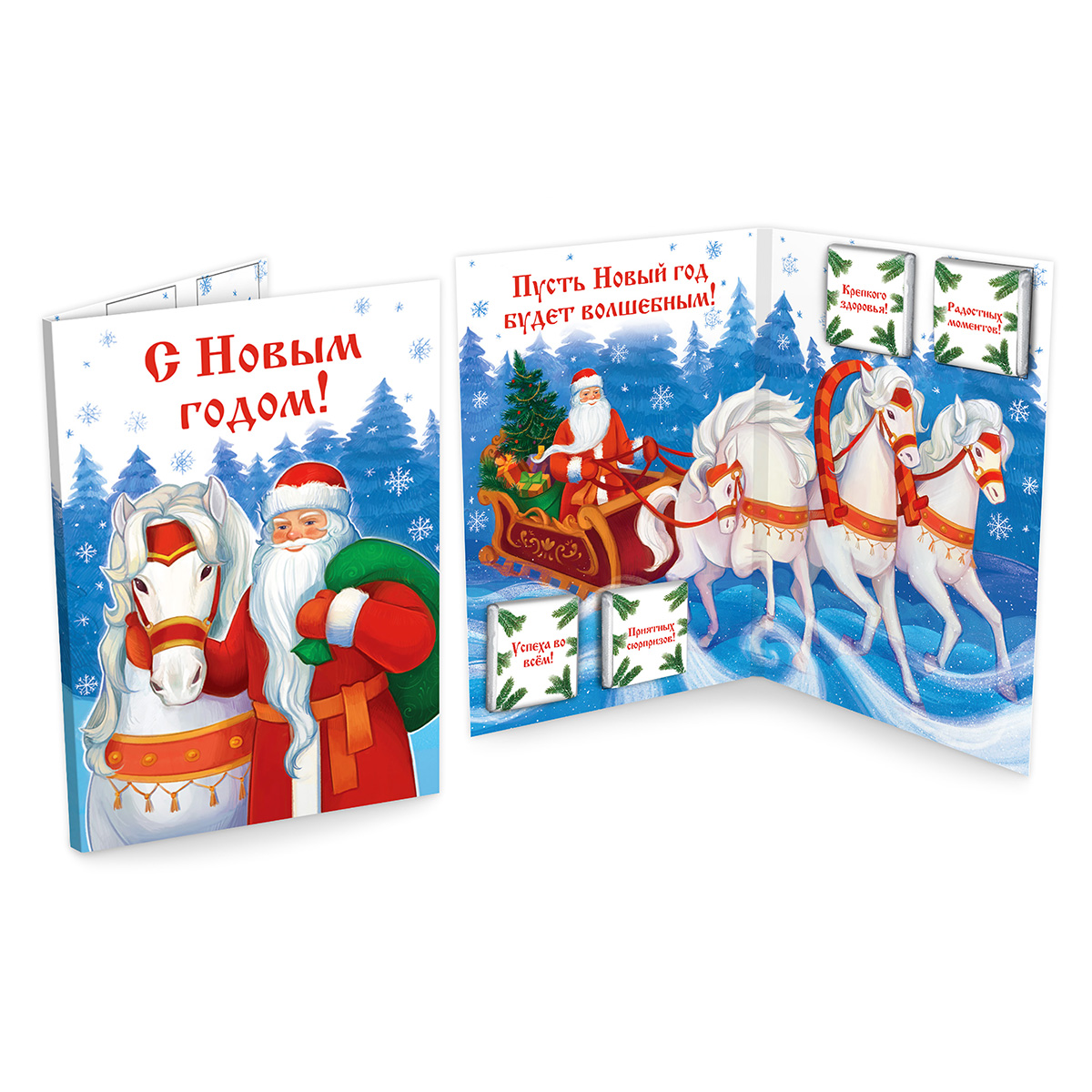 ChokoCat Открытка с шоколадными плитками 20 г ДЕД МОРОЗ И КОНИ ОТК171 Фото 1.