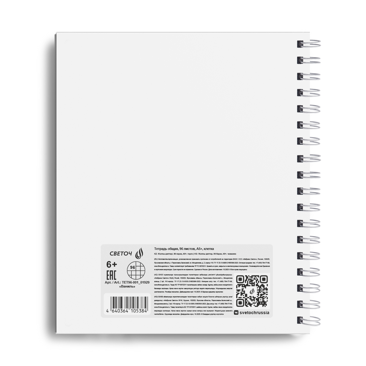 Тетрадь общая А5 формата, 96 листов предназначена для учащихся средних и старших классов, учащихся вузов, а также прекрасно подойдет для дома и офиса. Внутренний блок изготовлен из качественной офсетной бумаги плотностью 65 г/кв. м, 100% белизны, обложка - пластик 500 мкм. Линовка - клетка. Вид скрепления - гребень. Скрепление гребень позволяет раскрывать тетрадь на 360 градусов.