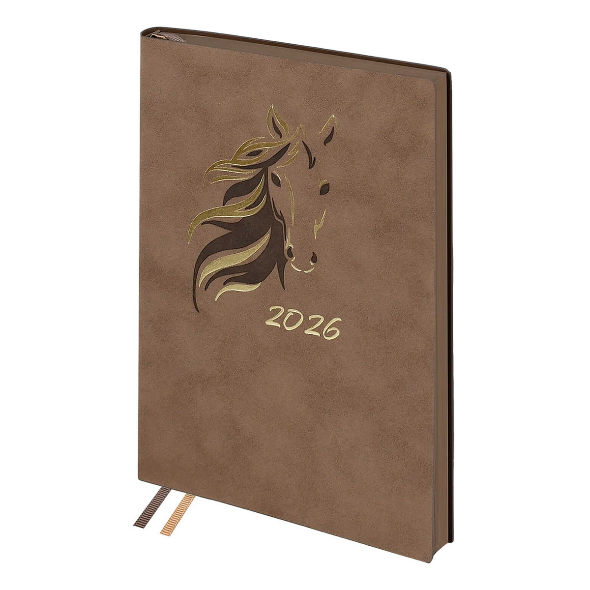 Escalada 70268 Ежедневник датированный 2026 A5 176 л. замша бежевый Фото 1.