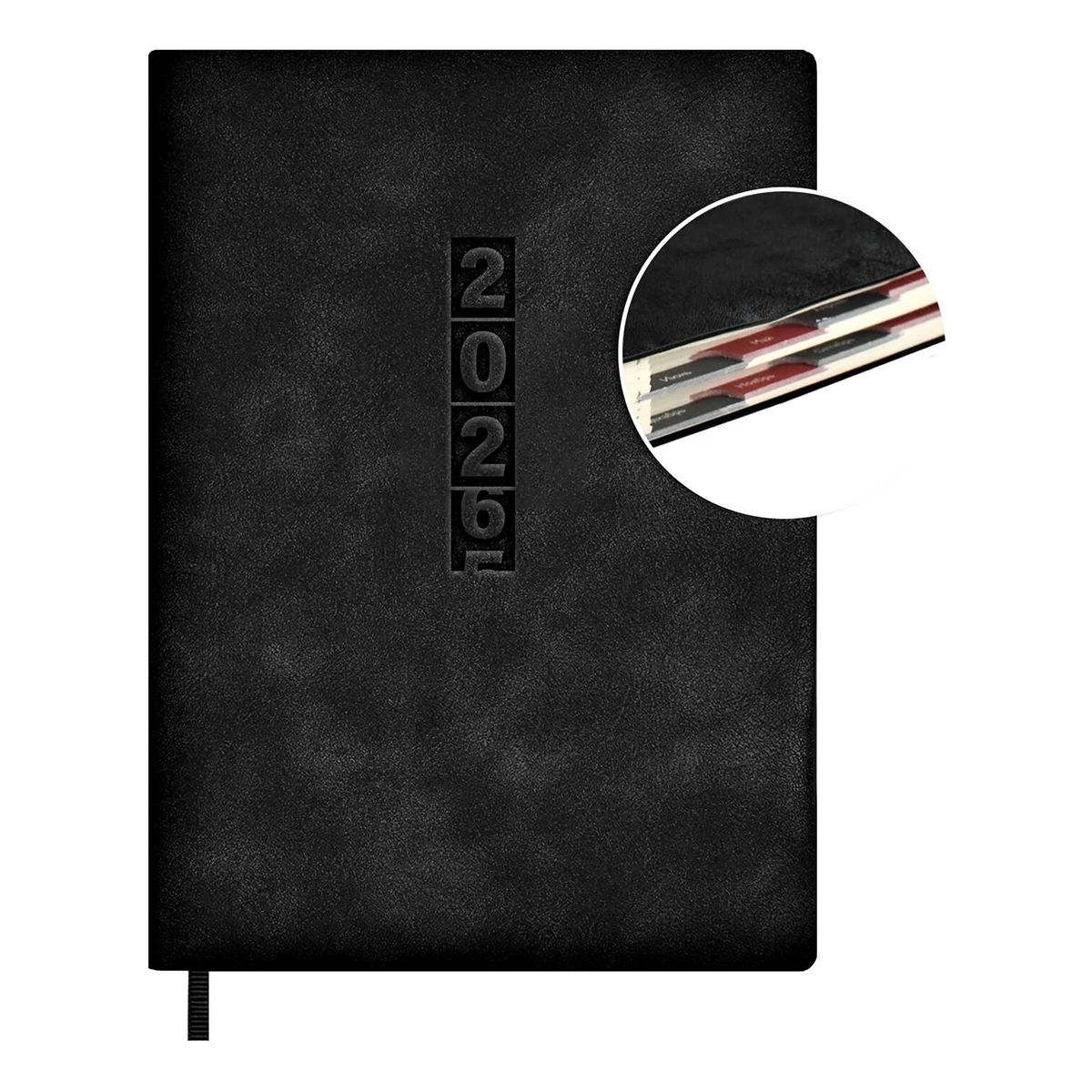 Ежедневник датированный 2026 ESCALADA, формат А6+ [126х174 мм], 176 л. Обложка: мягкий переплёт, запаянный край, блинтовое тиснение, обстрочка по периметру - нет, скруглённый корешок, прямые углы обложки. Внутренний блок: ниткошвейный, кремовый офсет 70 г/м?, печать в две краски [линия], прямые углы блока, перфорация углов блока - есть, справочный материал - есть. Красочность форзаца: печать пантоном. Закладка: одно ляссе. Каптал: есть. Особенности: вырубка блока по месяцам, в блоке использованы мотивирующие высказывания экстраординарной личности, предпринимателя и миллиардера, титулованного «Провидца века», шоумена и телеведущего, бывшего владельца конкурса красоты «Мисс Вселенная» и дважды президента США – Дональда Трампа. Индивидуальная упаковка: промостикер + ПЭТ-пакет.