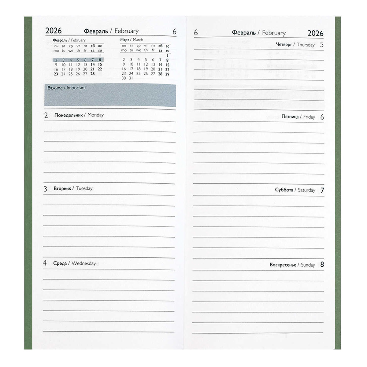 Escalada 70374 Еженедельник датированный 2026 A6+ 64 л. тиволи глосс хаки Фото 2.